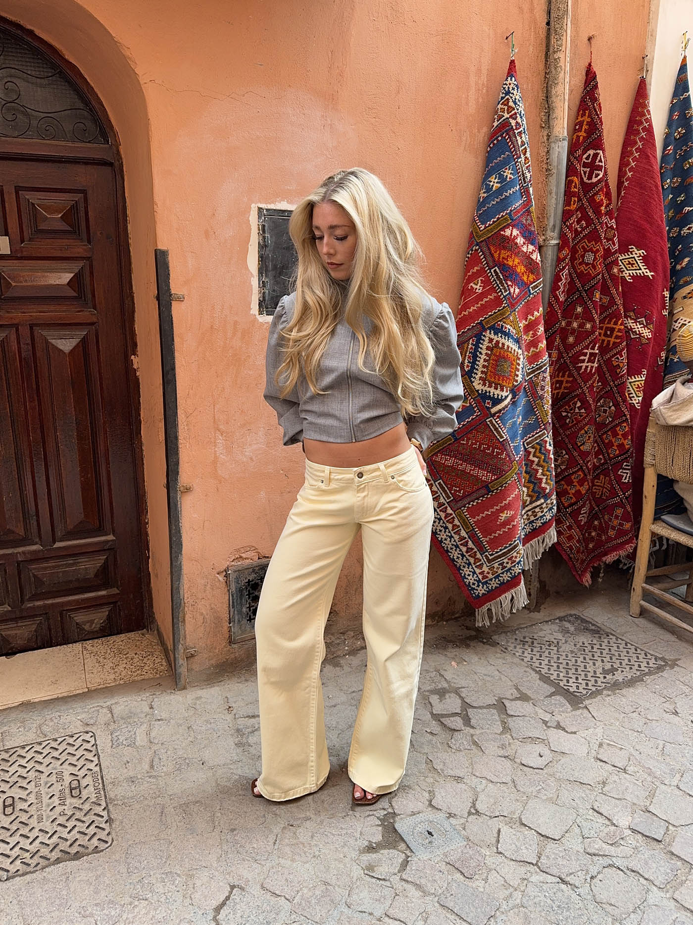 Designed with classic details such as belt loops and pockets, these jeans are versatile and easy to style. The neutral sage-green tone pairs beautifully with both light and dark shades – ideal for everything from casual everyday wear to more polished looks.