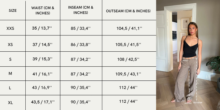These pants are designed with a herringbone print and feature a low waist. They have a straight, loose fit with two pockets on each side and two decorative back pockets. The pants fasten with a zipper and hook closure and come with belt loops.