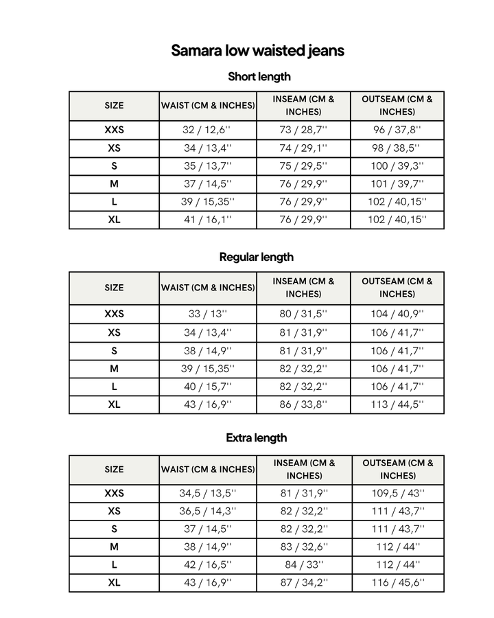 Our new Samara jeans can be styled both mid- and low waist. The trousers have a straight fit and full length.