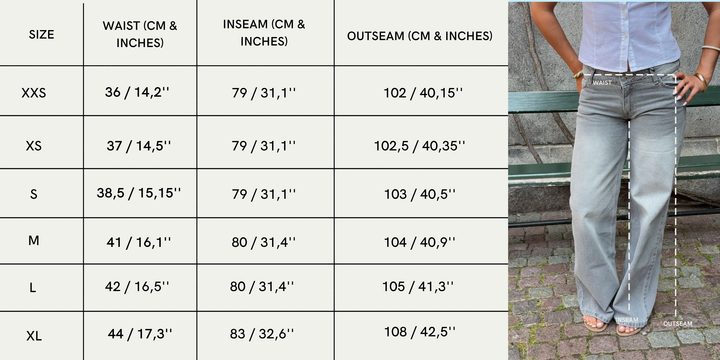 The design sits low on the hips and accentuates the waist and hips in an elegant and modern way. The light grey denim offers a clean, fresh look that can easily be styled with both colorful tops and neutral basics.