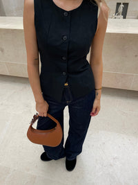 This small bag is perfect for storing your essentials like your phone, keys, and cards. It closes with a stylish gold zipper that adds a luxurious touch. Inside, you'll find a practical small compartment that keeps your valuables organized and easily accessible. With its compact design, this bag is ideal for everyday use and makes it easy to carry your essentials in style.