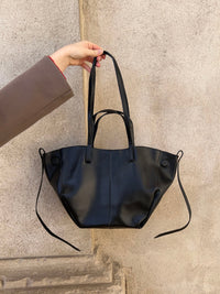 Discover our spacious bag, designed for everyday use. It closes with a discreet magnet, providing both easy access and secure storage. Additionally, it comes with an inner pouch. With its timeless design and soft materials, the bag combines functionality with elegance. It can be carried by a short handle or over the shoulder with the long straps – the ultimate shopper bag!