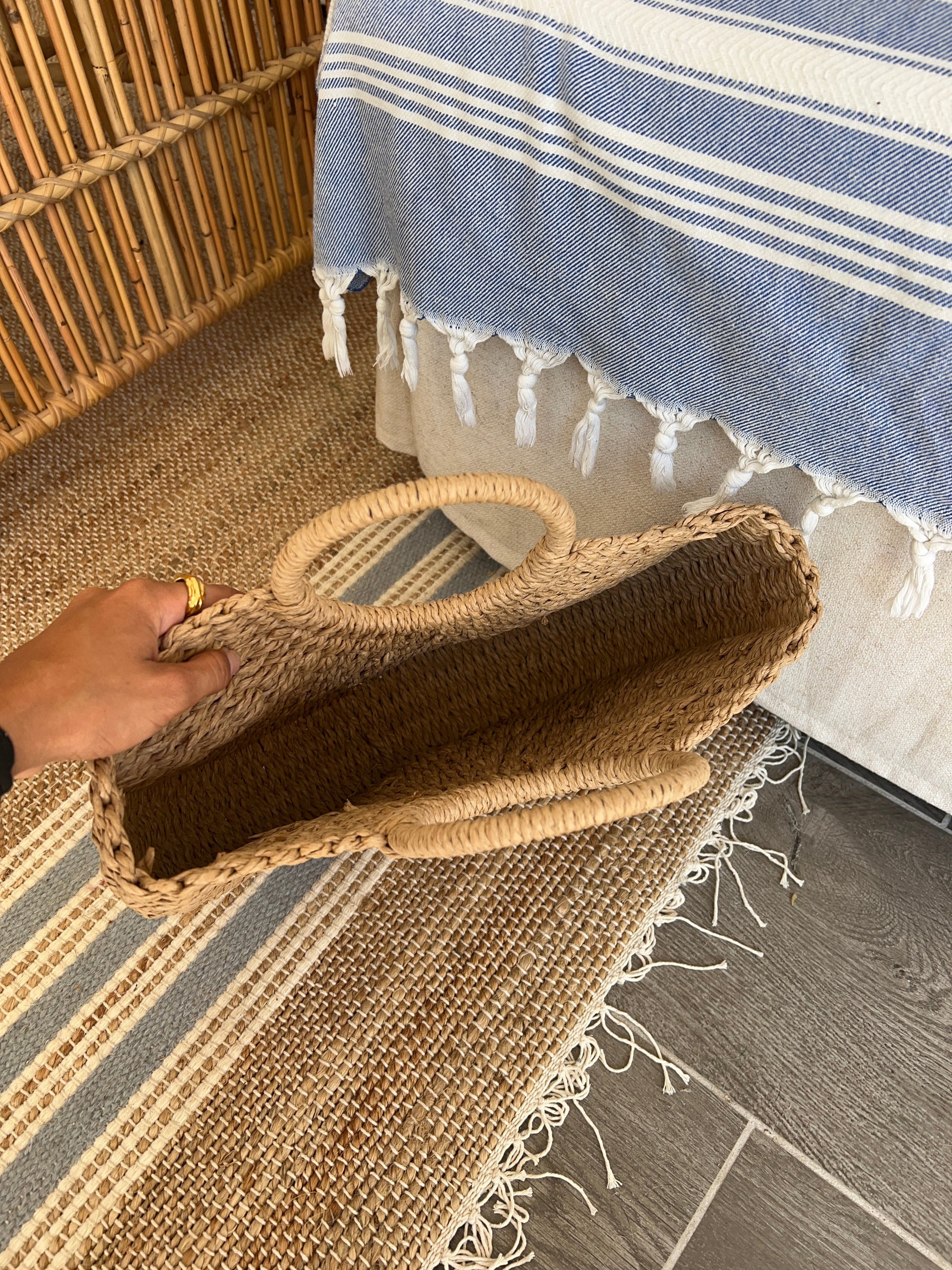 This beautifully woven round straw bag is the epitome of effortless summer style. With it's clean circular shape, and integrated handle crafted from the same material, it strikes a perfect balance between elegance and function. The structured form adds natural volume, making it both stylish and practical for sunny days out.