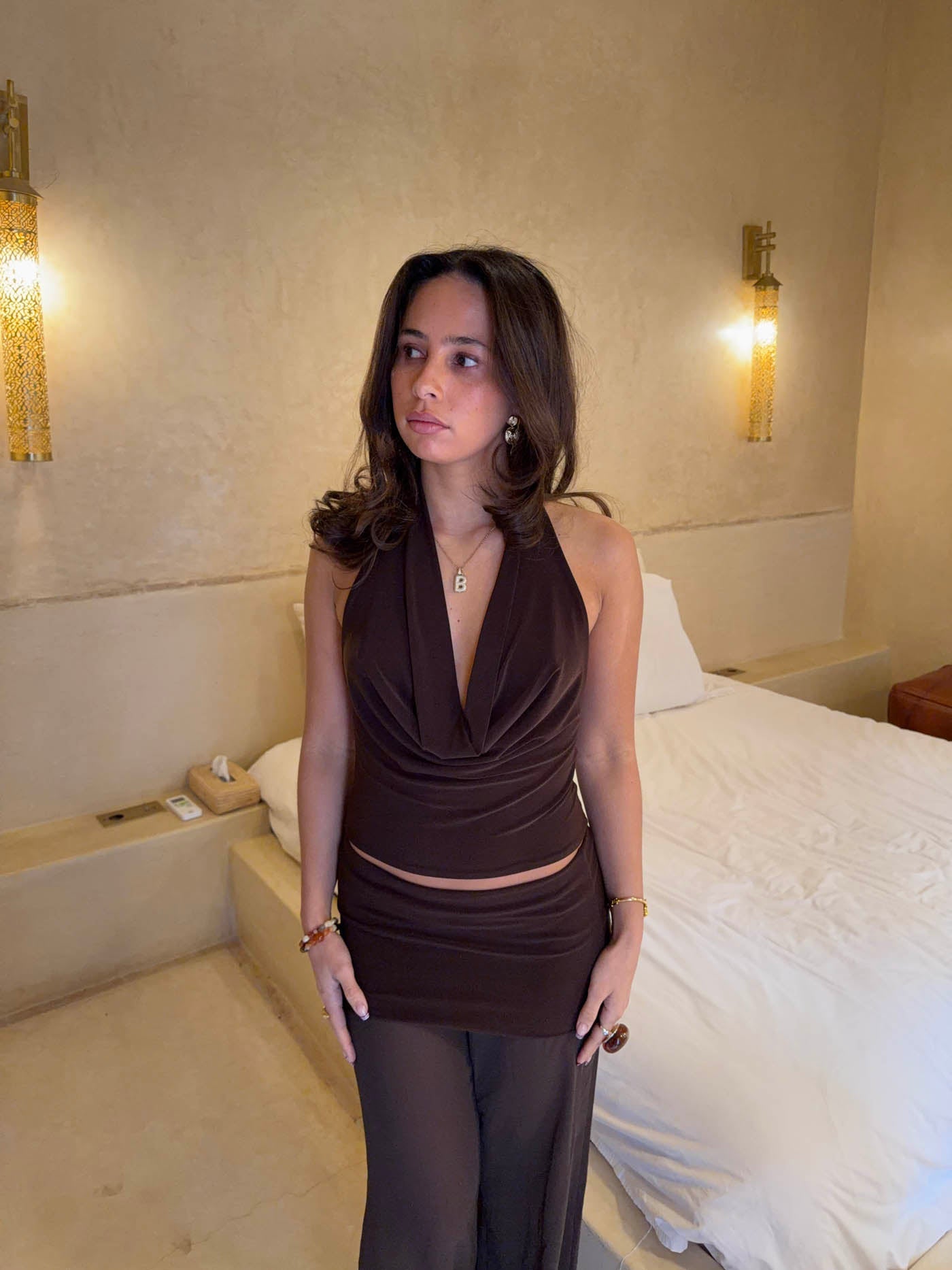 Bilana halterneck top – Brown