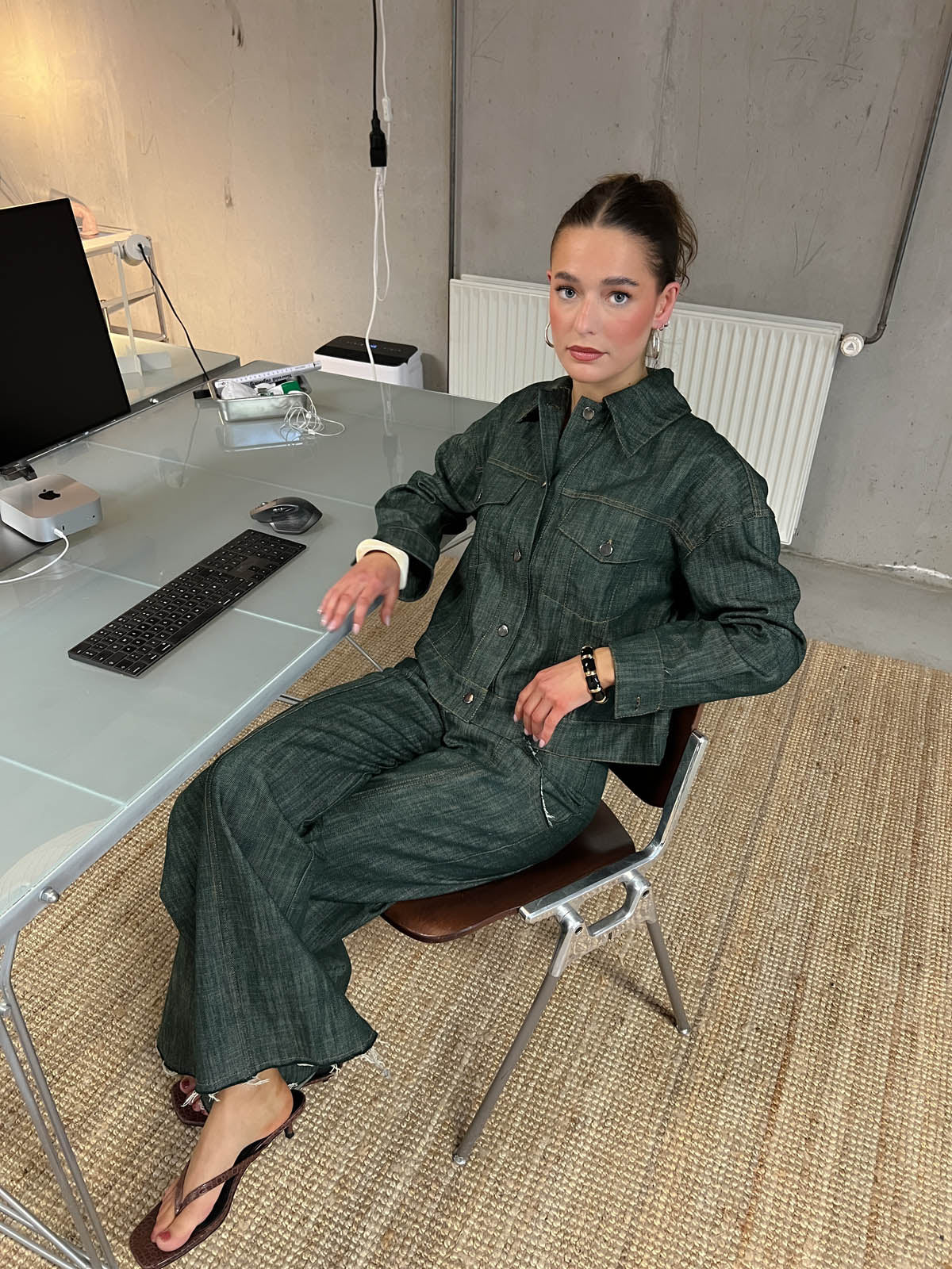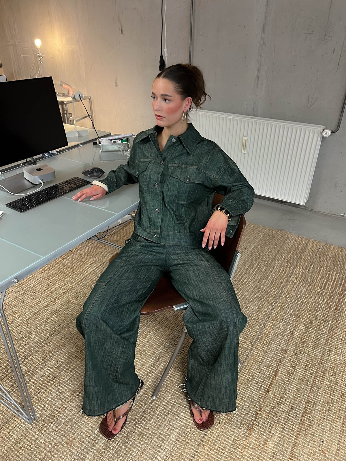 The fit is slightly boxy, offering a relaxed yet polished look that’s easy to style over dresses, T-shirts, or knitwear. A versatile outerwear piece you can wear season after season. Style it on its own or with the matching jeans for a coordinated look.