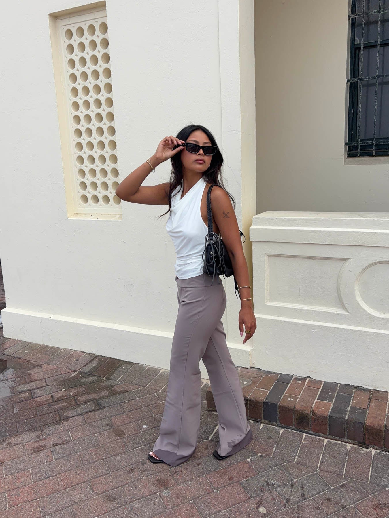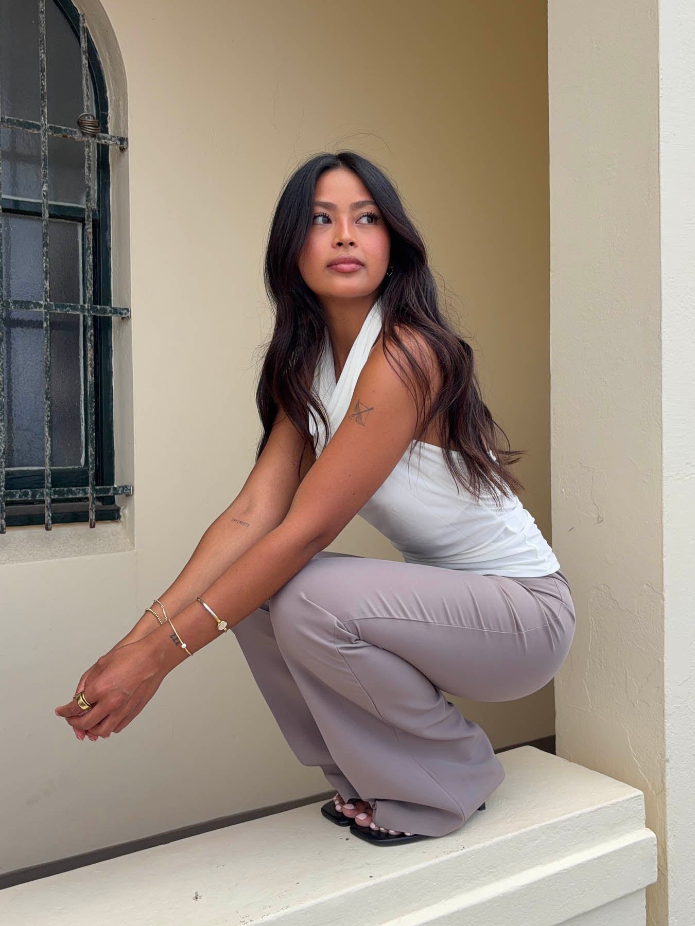 This sleeveless halterneck top is made from soft viscose with a draped neckline that combines both comfort and style. The short length and open back provide a flattering and relaxed fit, while the elastic quality ensures a perfect and flexible fit. Ideal for both casual and more festive occasions, this top is a versatile element in your wardrobe.