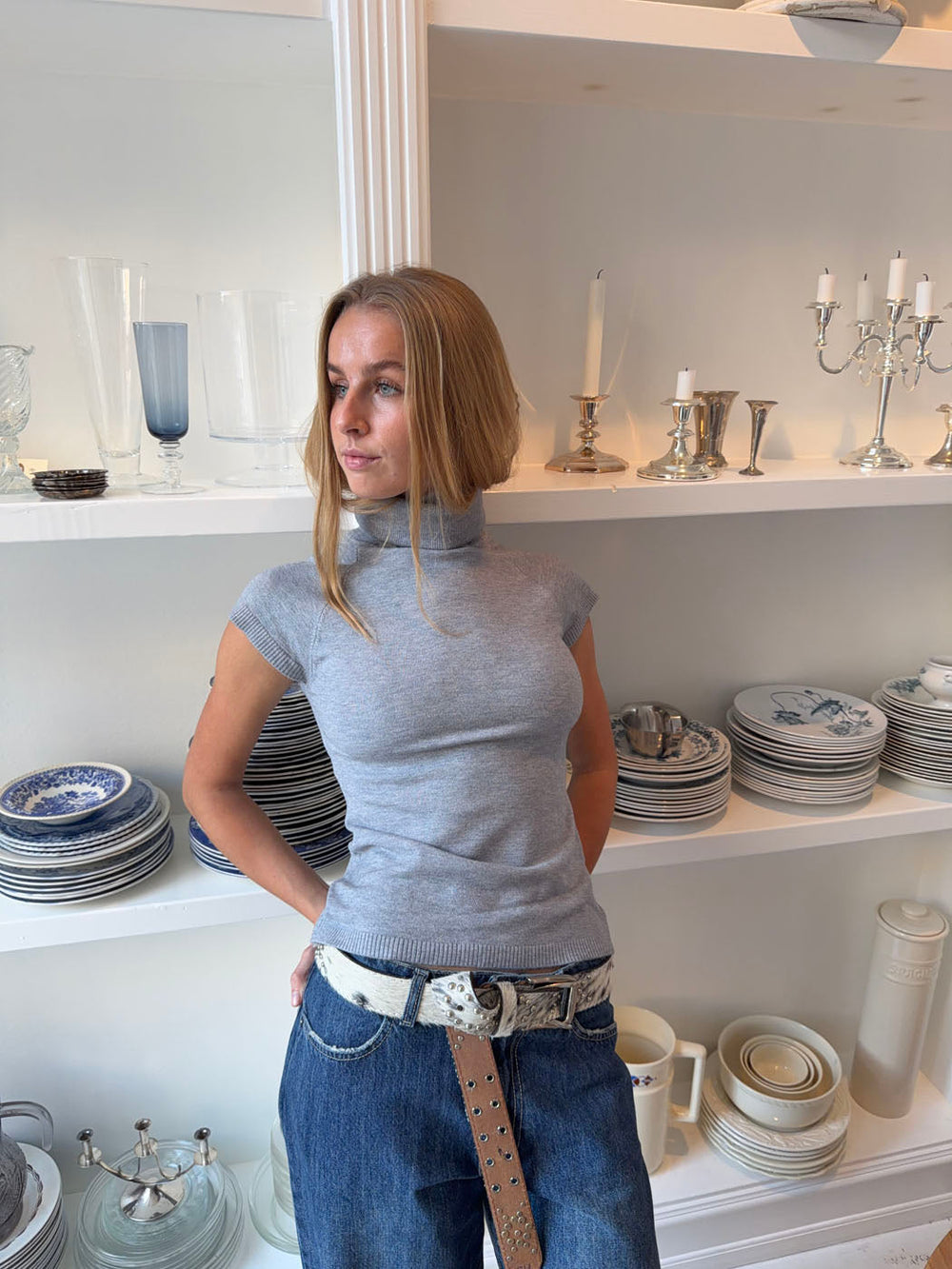 This blouse is made from the softest and most comfortable material. The blouse has short sleeves with the finest ribbed detail. It is made with a high neck, which gives the blouse a different and unique look.