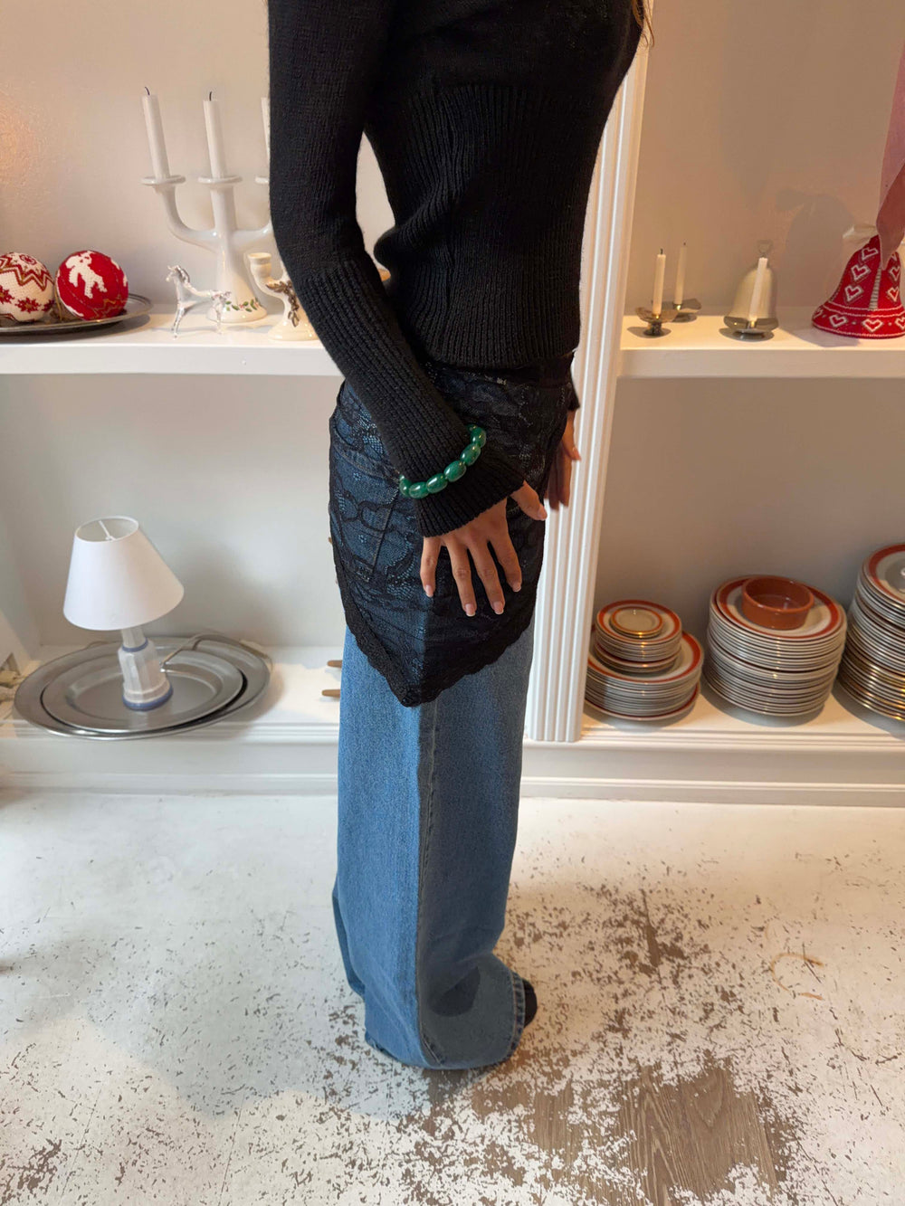 An elastic bracelet with oval green beads featuring a glossy, amber-like finish. The bracelet has a simple and natural look, making it easy to pair with both everyday outfits and more bohemian-inspired styles. Perfect as a minimalistic accessory that adds warm tones to your look.