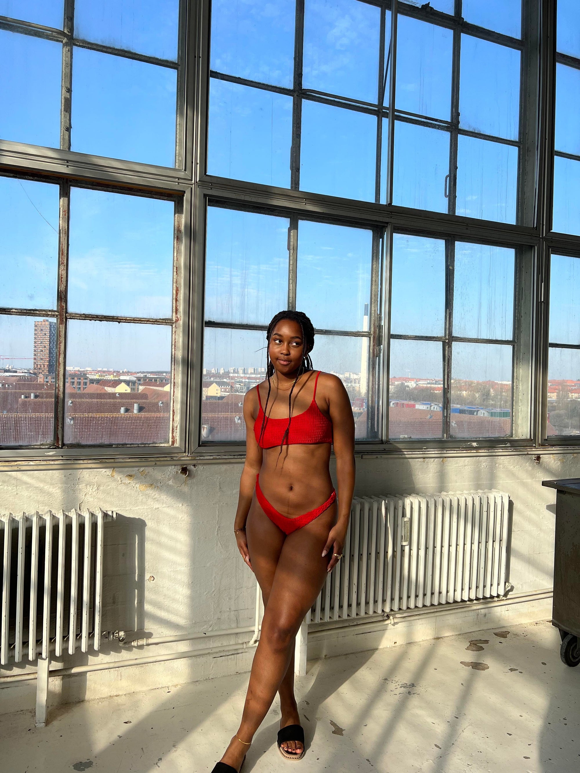 Jade bikini with brazilian bottom. Colour: Red 82% Nylon, 18% Spandex