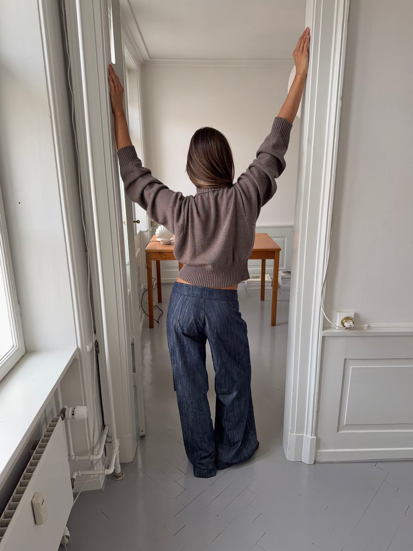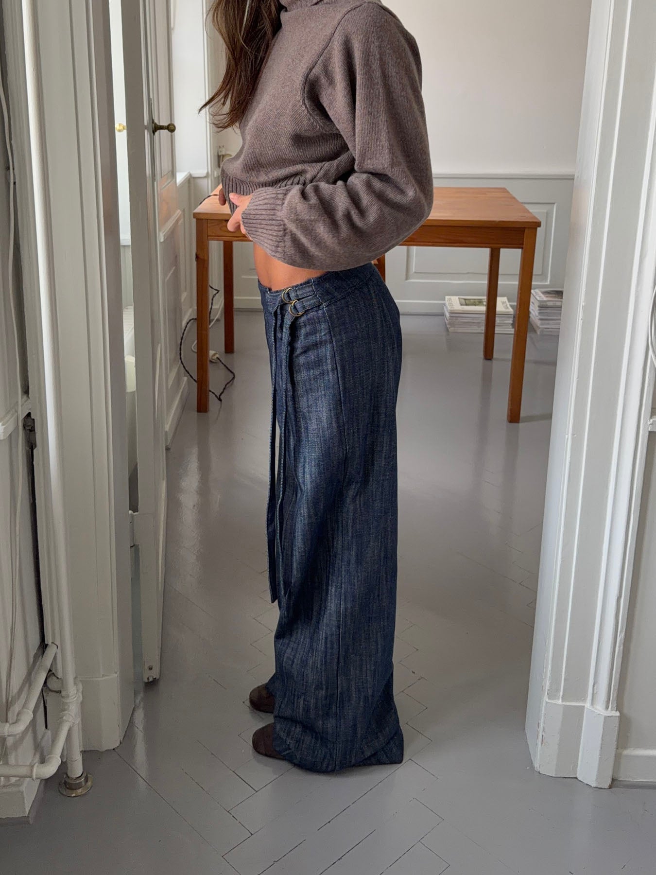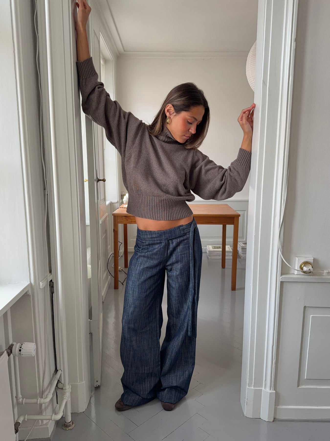 These trousers combine a minimalist look with relaxed comfort. The lightweight woven fabric provides an airy and comfortable fit, while the adjustable drawstring and metal details add a clean, stylish touch. The straight-leg design makes them perfect for both everyday wear and more casual occasions.