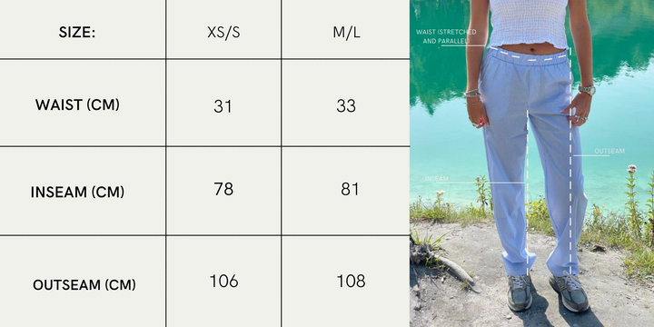 Straight fit striped trousers in light fabric. Has elastic at the waist and pockets at the sides.