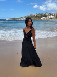 Beautiful and long summer dress in comfortable material. The dress has a smock on the back, v-neckline and ties in the front at the chest. All important details that make our Lydia dress the perfect summer dress!