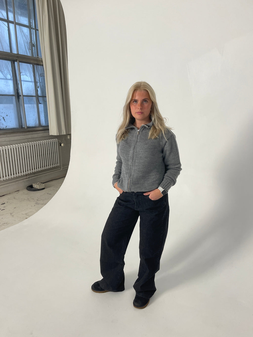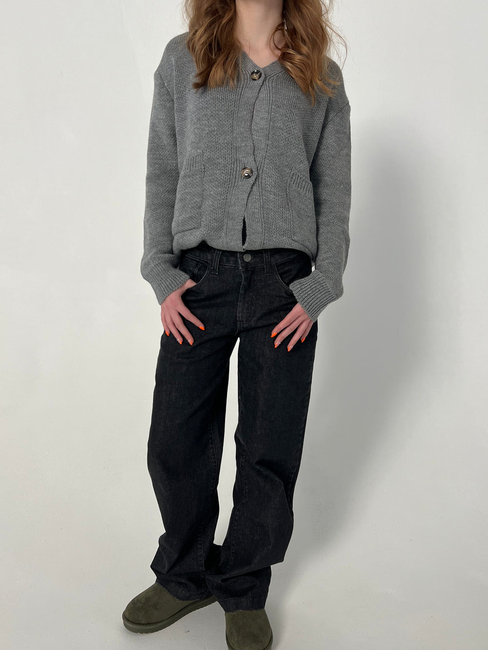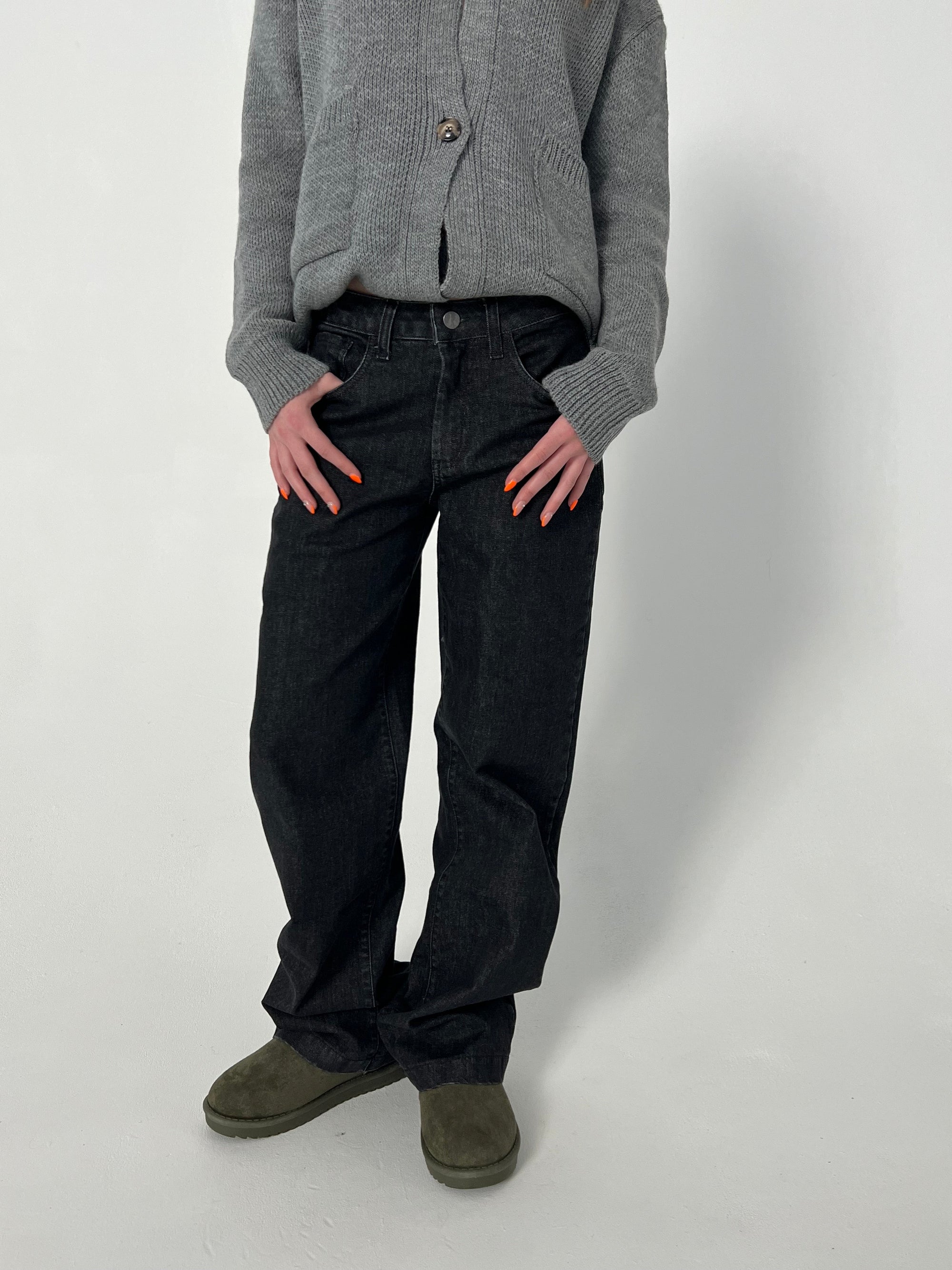 Straight-leg jeans that can be styled both low- and midwaist. These jeans have two front and back pockets and a zip fastening. They have a loose and oversized look, making them super cool and perfect for everyday wear.