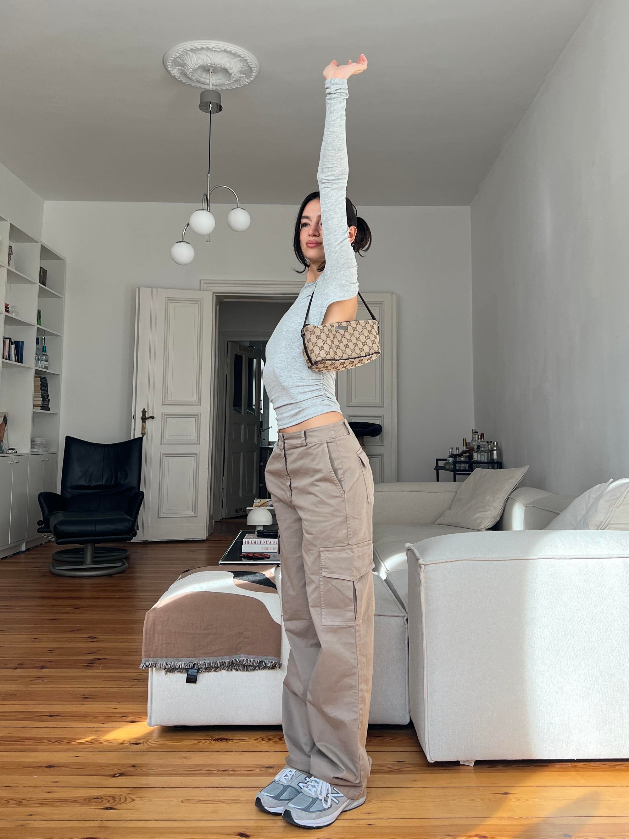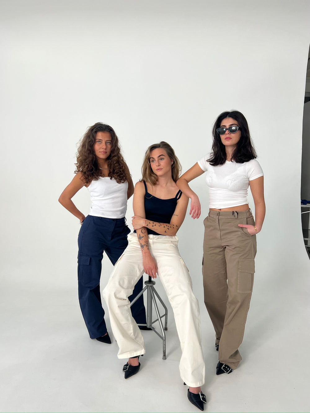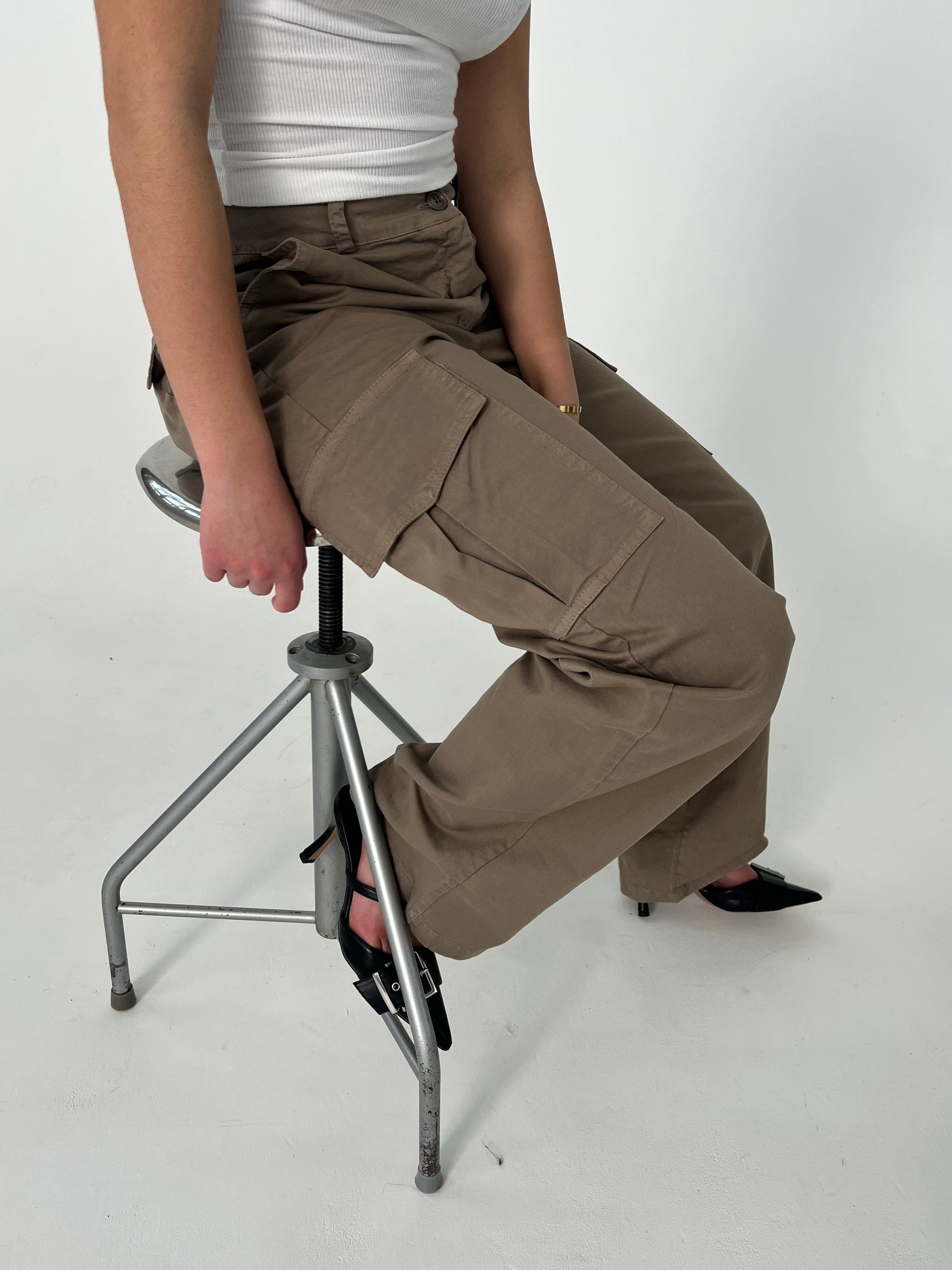 Our version of the perfect cargo pants. The pants closes with a zipper and a button on the front. These cargo pants have 2 pockets on each side of each leg.