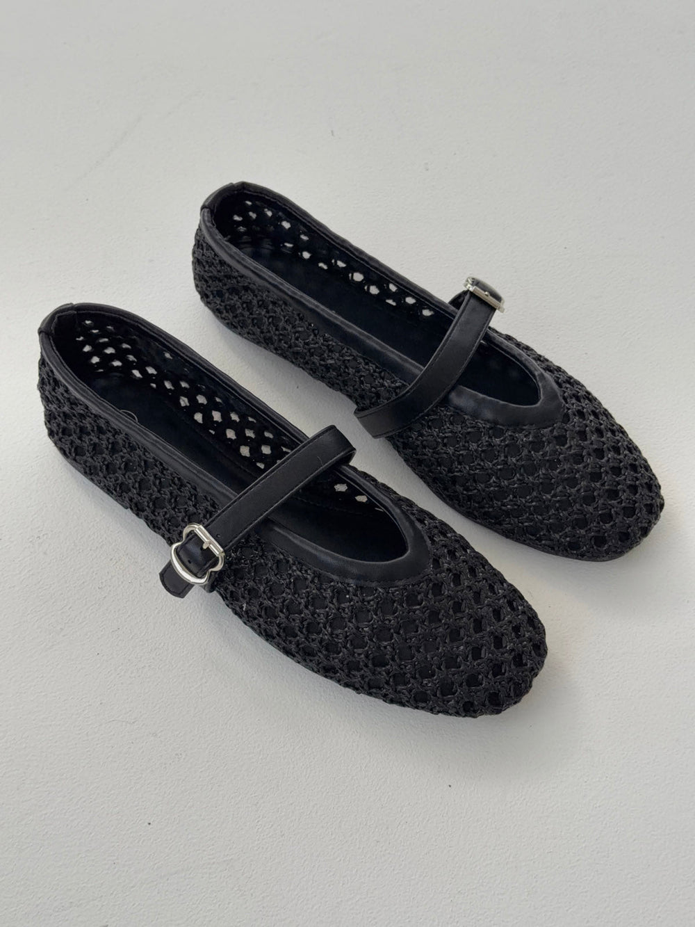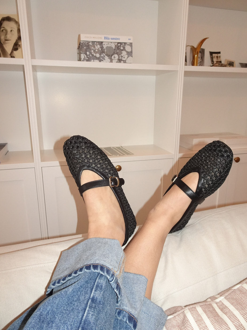 These woven ballerinas in natural shades exude summery lightness and timeless style. The open, woven structure gives an airy, handcrafted feel, while the strap across the instep adds a feminine and classic touch. The soft, neutral color makes the shoes easy to style with everything from light summer dresses to relaxed linen trousers. Perfect for warm days when comfort and aesthetics go hand in hand – a pair of shoes that radiate natural elegance and effortless style.