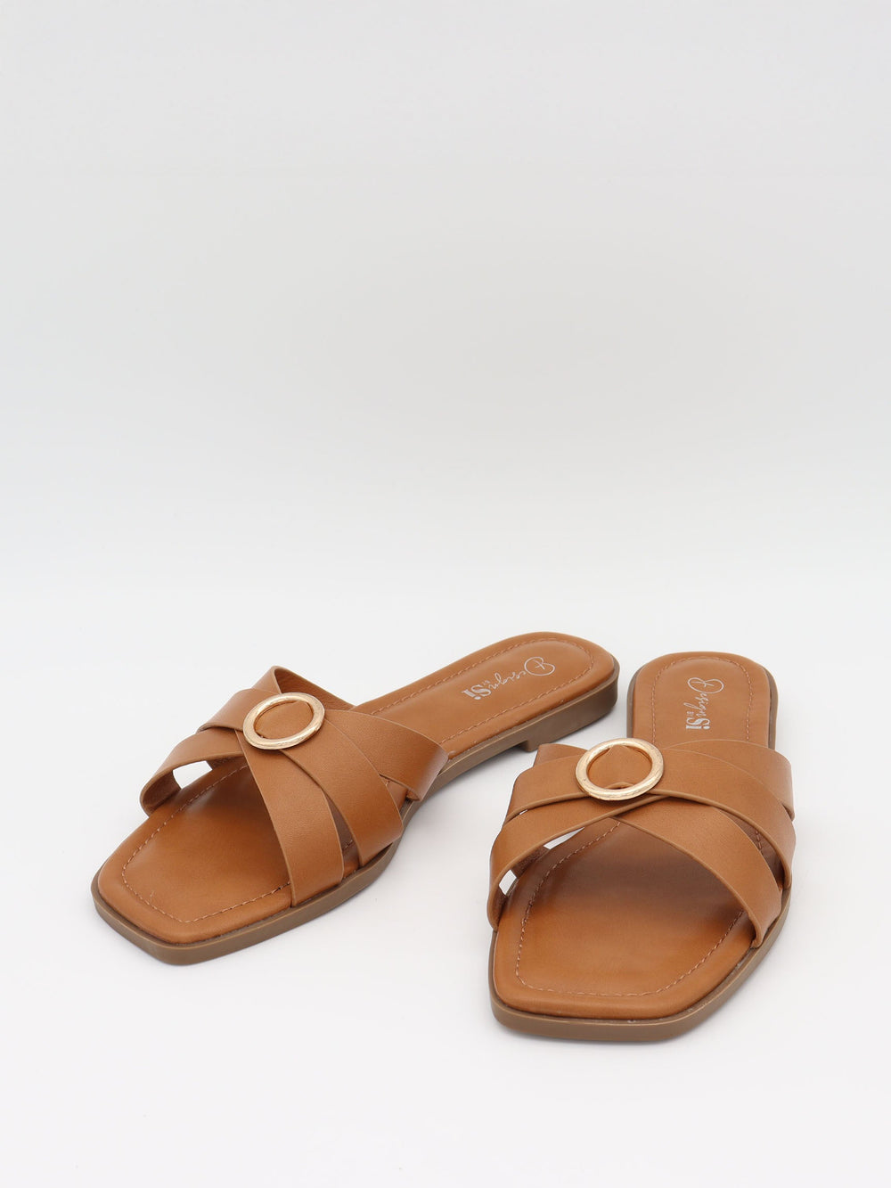 These beautiful brown sandals are both comfortable and stylish – a must-have for the summer wardrobe. The wide, crisscrossing straps create an elegant and modern look, while the round gold detail on the front adds a feminine and exclusive touch.