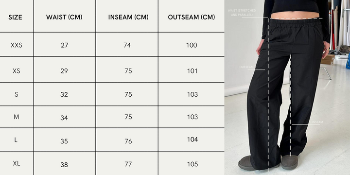These track pants have a wide elastic waistband that allows them to fit most sizes. The pants have a straight fit and are wide in the legs.