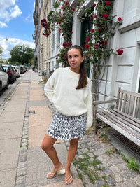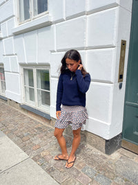 The prettiest skirt with frills and cute print. The skirt has smock details at the waist and is short. Can be styled both mid- and low-waisted. The perfect summer skirt!