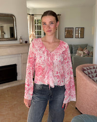 Long-sleeved blouse with a V-neck and leopard print. The top has a loose and comfortable fit.