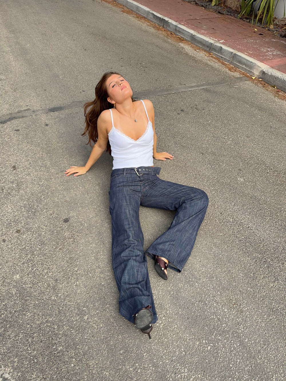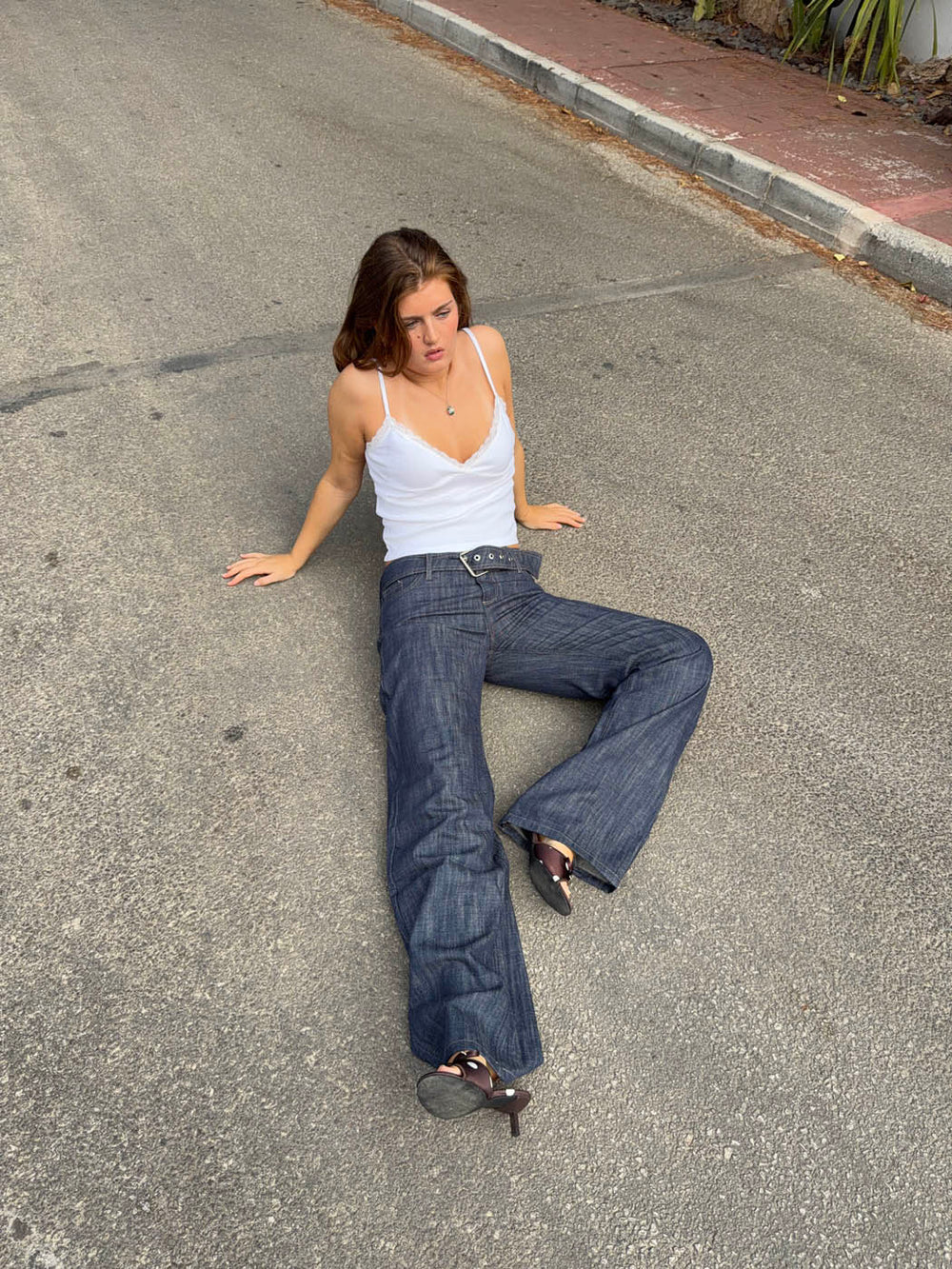This simple yet elegant top is a must-have wardrobe essential. Made from soft ribbed fabric, it feels comfortable against the skin and offers a flattering fit. The delicate lace trim along the neckline adds a feminine and romantic touch, while the thin adjustable straps ensure a perfect fit.