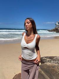 The delicate ruching and cut-out detail at the front create a flattering appearance, making the top perfect for both everyday wear and festive occasions. Style it with jeans for a casual yet chic look, or with a skirt and jewelry for a more elevated outfit.