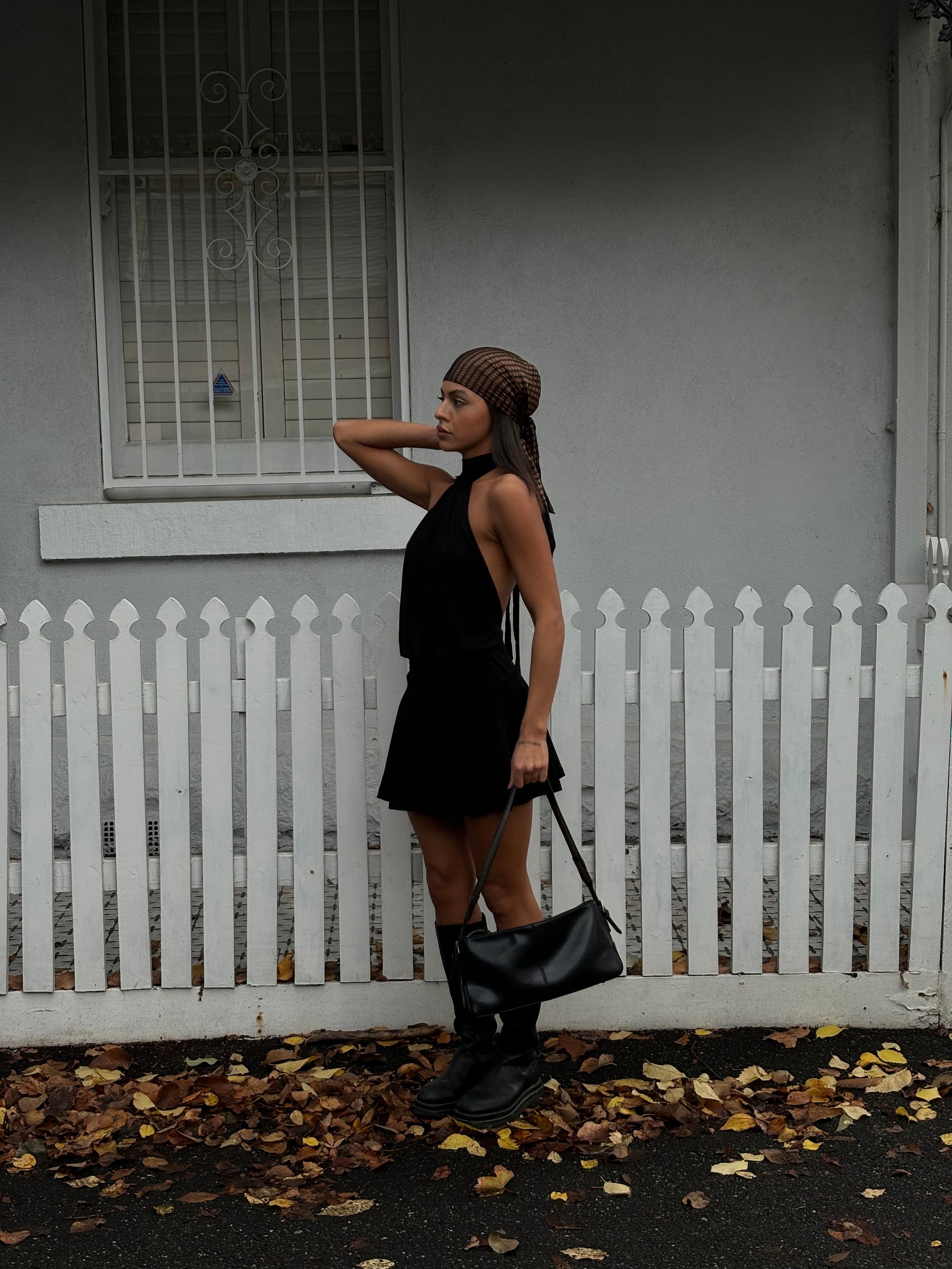 Our Kaiana dress is the perfect blend of cool and feminine. It features an elasticated waist for a flattering silhouette and a wide tie that can be styled creatively around the neck or back. The open back and short, flowy skirt make it ideal for warm summer days or evenings when you want to feel both relaxed and stylish.