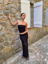 Our Fiorella skirt combines refined texture with a timeless silhouette. Made from a lightweight lace-like fabric with subtle structure and an inner lining, it offers a sophisticated and feminine look. The long, straight fit creates an elegant drape, while the semi-sheer outer layer adds depth and lightness. Style it with a simple top and sandals for everyday wear – or pair it with the Jimma top to complete the set.