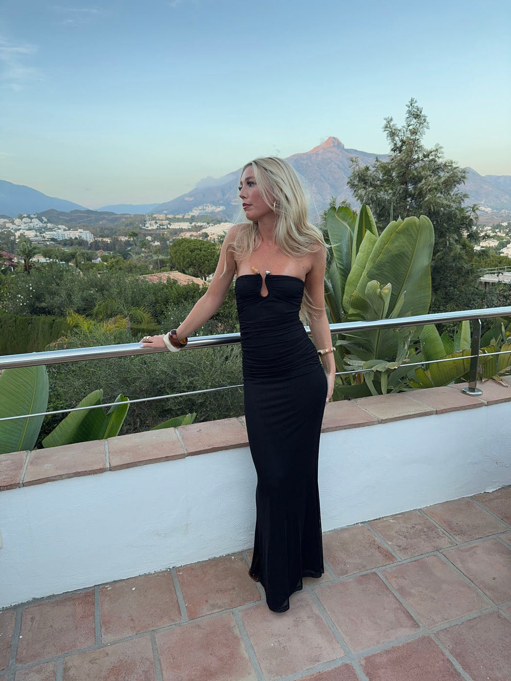 Classic and elegant – this black strapless maxi dress is a timeless choice for any special occasion. The dress features a body-hugging fit with beautiful ruched detailing that accentuates your figure and creates a flattering silhouette. The soft, stretchy fabric ensures comfort and freedom of movement.