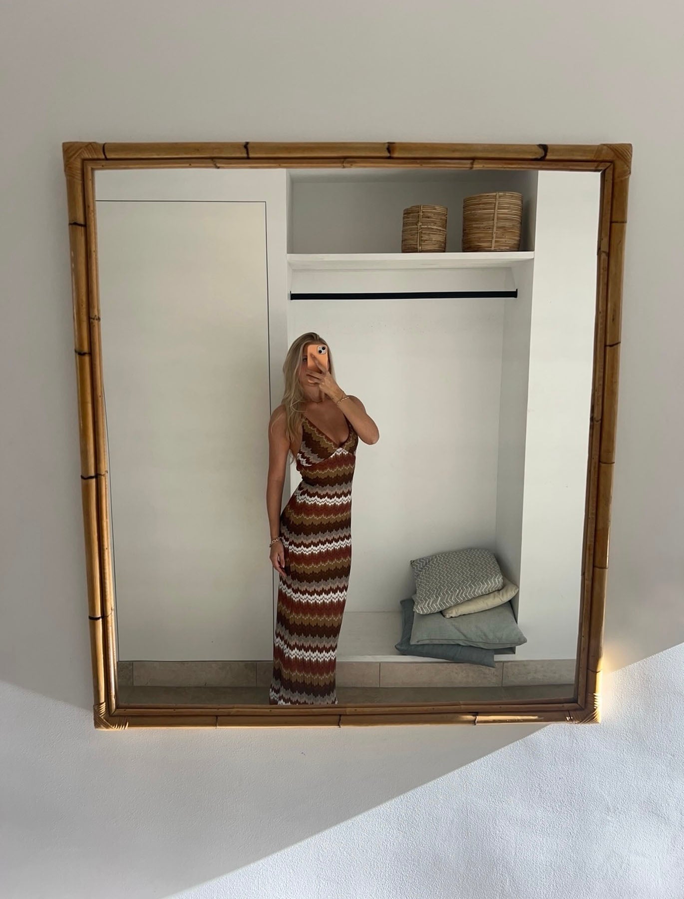 This beautiful dress in an earth-tone pattern combines comfort and style in one elegant design. The natural color palette creates a timeless aesthetic that is perfect for both everyday wear and special occasions.