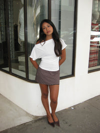 This lovely dotted skirt is a must-have for anyone who loves a classic and playful look. The black fabric with white dots gives it a retro-inspired feel, while the soft and stretchy quality makes the skirt incredibly comfortable to wear.