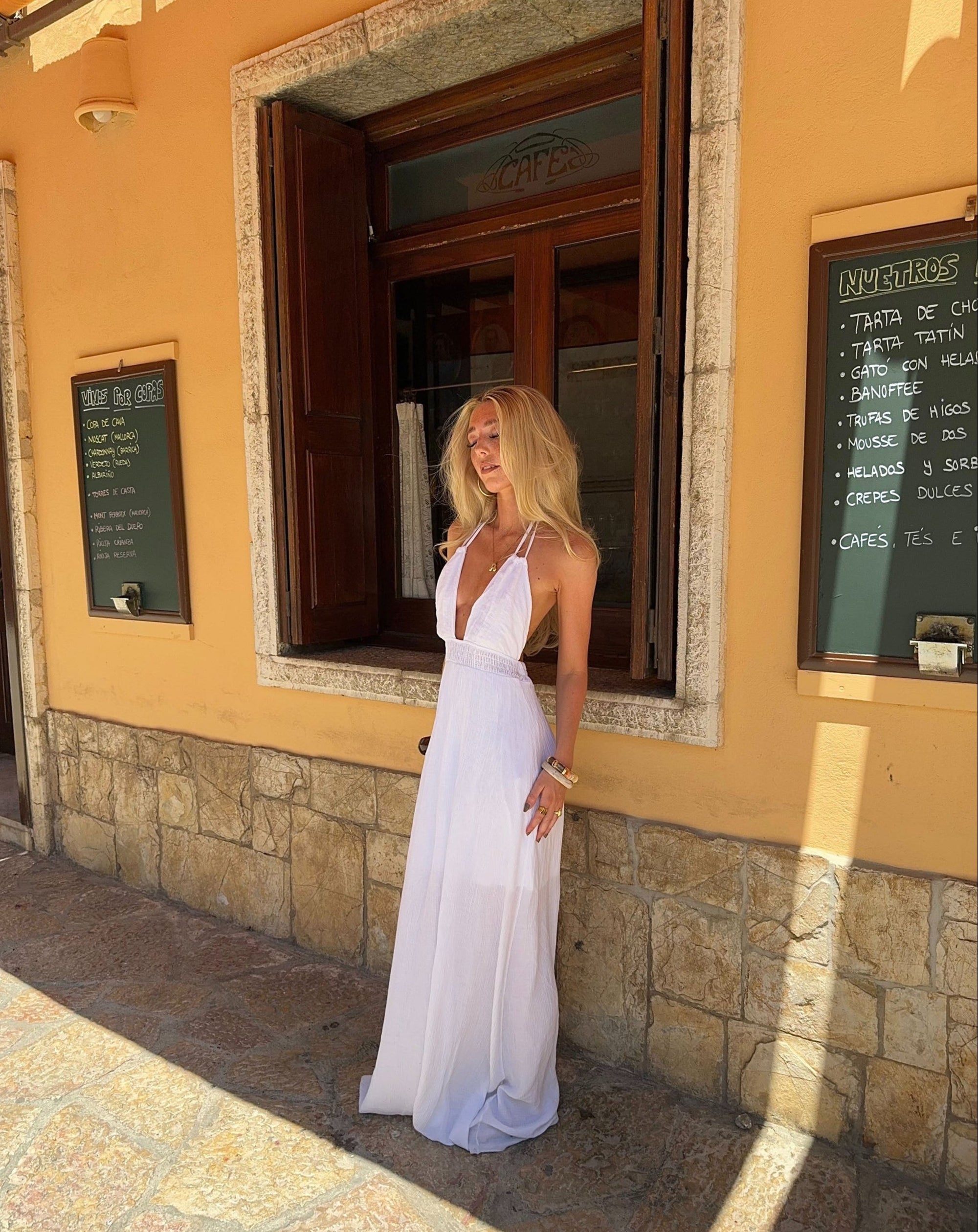 An ideal choice for warm days, vacations, and laid-back summer parties – style it with flat sandals for a casual daytime look or with heels and jewelry for a simple yet sophisticated evening outfit. The white tone highlights sun-kissed skin and offers a fresh, effortless appearance.