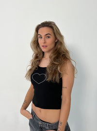 Classic rib tank top with spaghetti straps and the finest heart with rhinestones