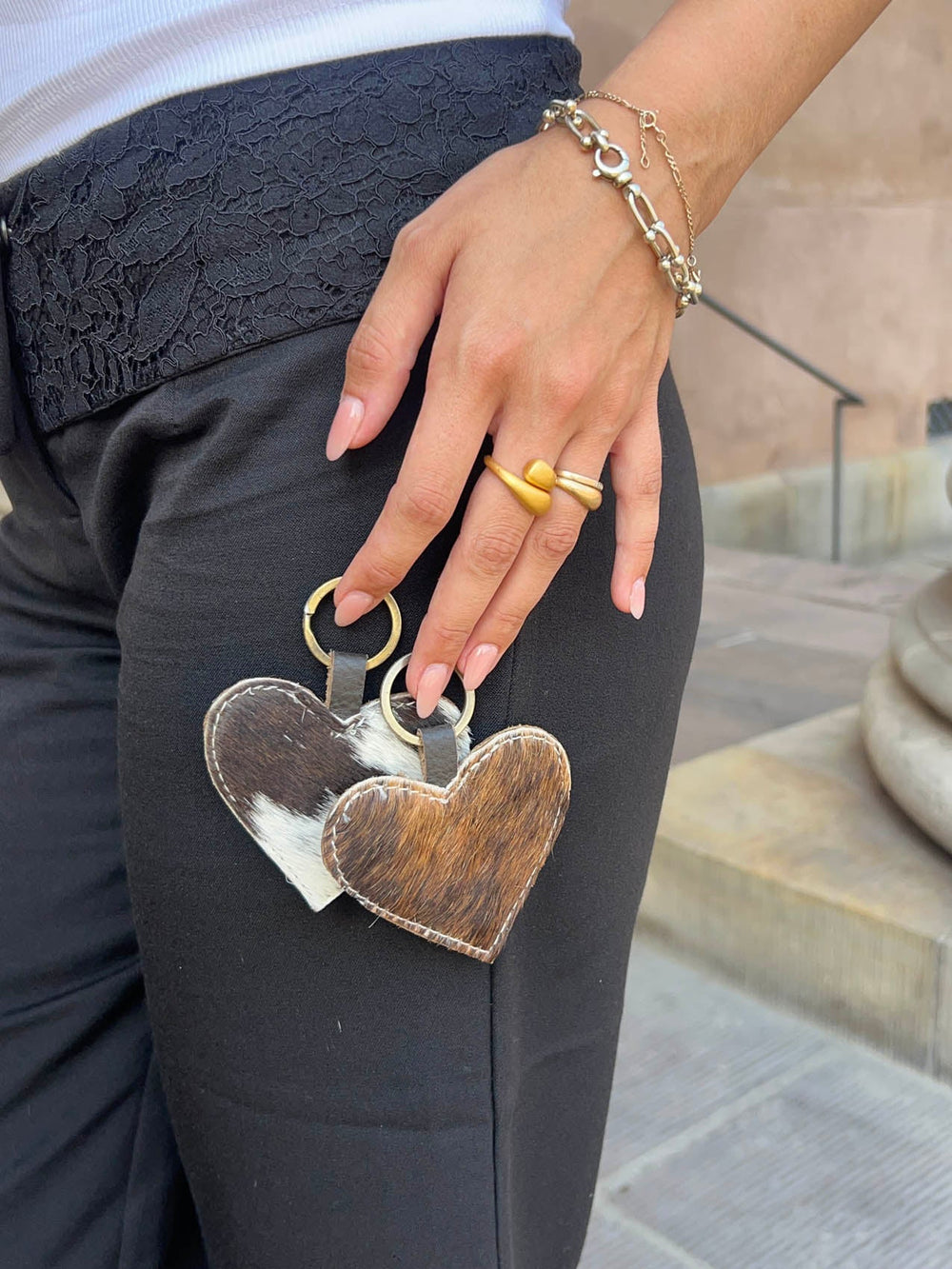 Add a touch of personality to your keys or bag with this charming Cavo keyring shaped like a heart. Made from genuine cowhide with brown fur, it offers a unique and natural look – no two are alike.