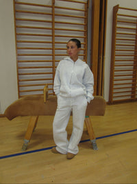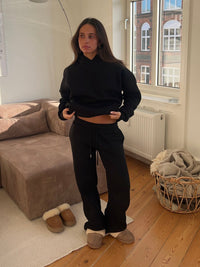 These sweatpants have a straight and comfortable fit. The trousers have an elastic waistband which can be tied with white laces. They are made of the softest material, and they have 2 pockets on the sides. Fits perfectly with our Anelise hoodie!