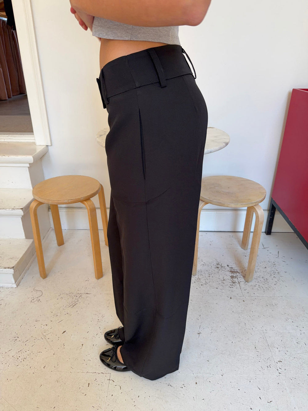 Classic black suit pants with a button closure for a timeless and sophisticated look. The tailored fit offers an elegant silhouette, while the lightweight and comfortable fabric ensures a high level of comfort.