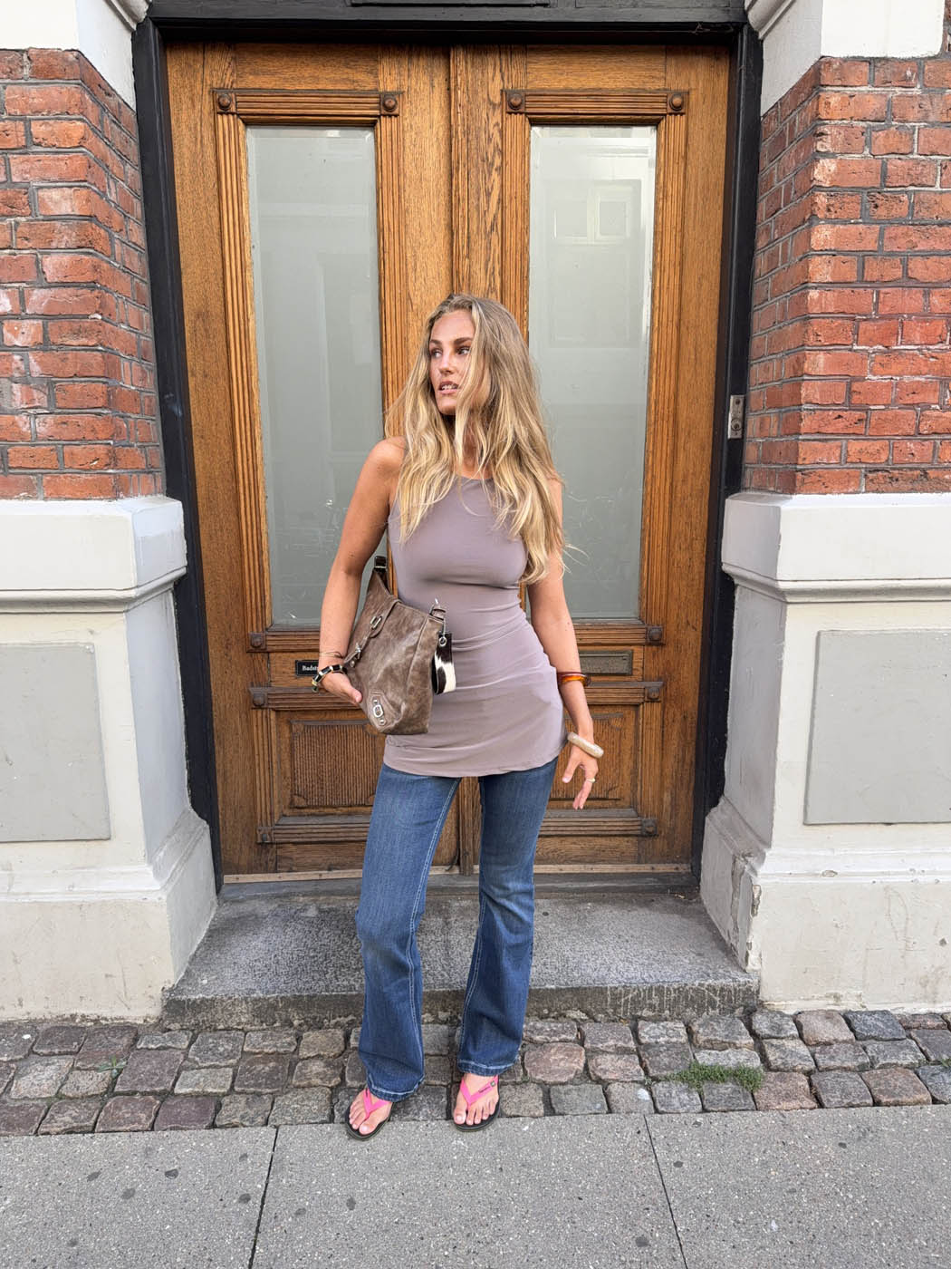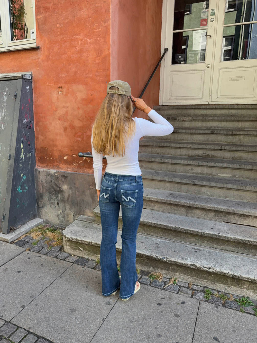 These classic bootcut jeans are crafted in a dark blue denim with lightly washed details that add depth and character. The slim fit through the hips and thighs combined with the subtle flare at the hem creates a flattering silhouette and timeless appeal. The design features a double-button closure and traditional pockets that enhance the authentic jeans look. The stretchy denim ensures comfort and freedom of movement, making them ideal for everyday wear β style them with anything from a feminine top to a chunky knit. A versatile pair of jeans that works for both daytime and evenings out.