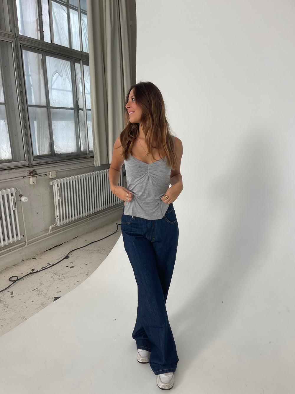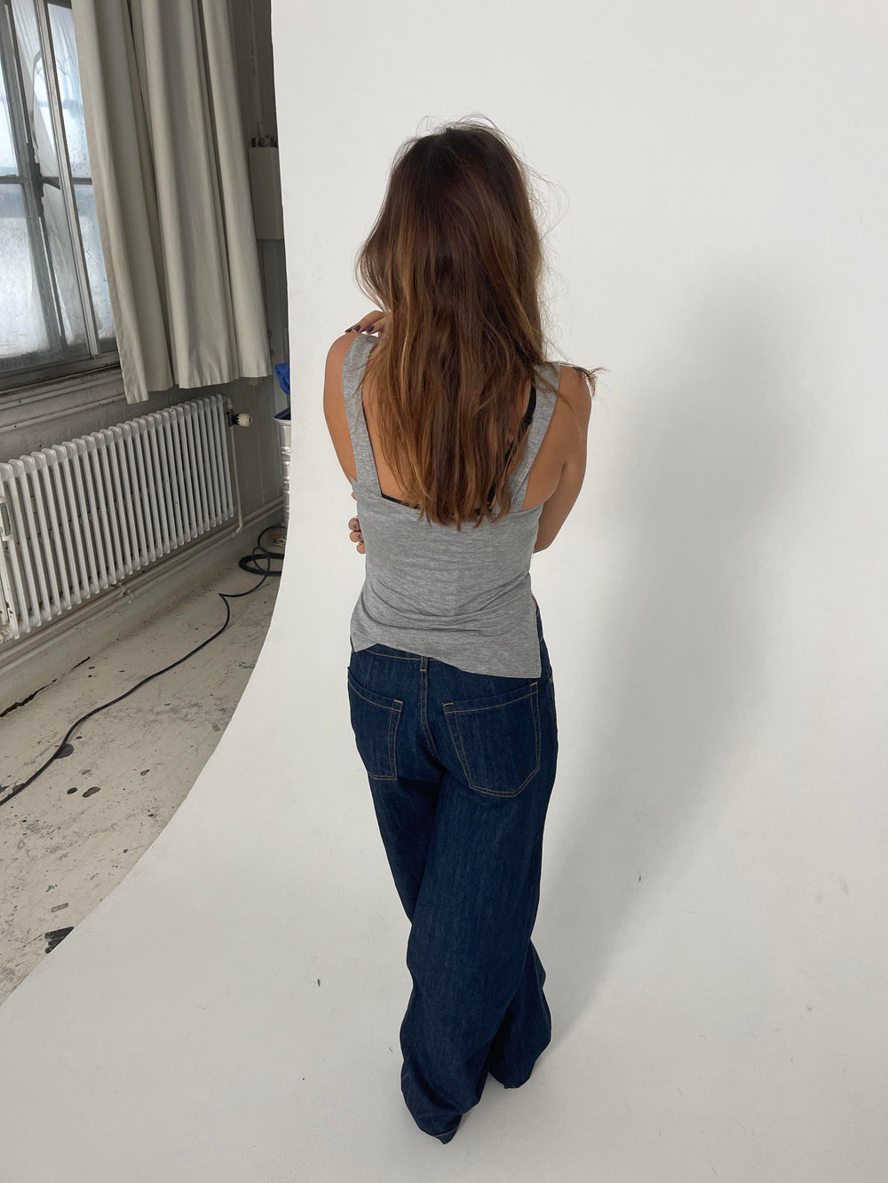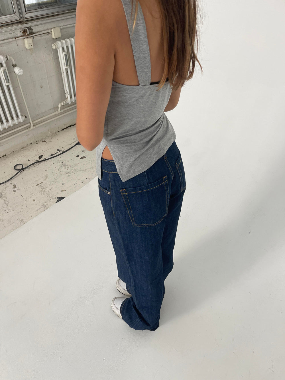 The prettiest wide leg oversized jeans that can be styled both mid- and low waist. These jeans close with a zip and button, and have two front and back pockets.