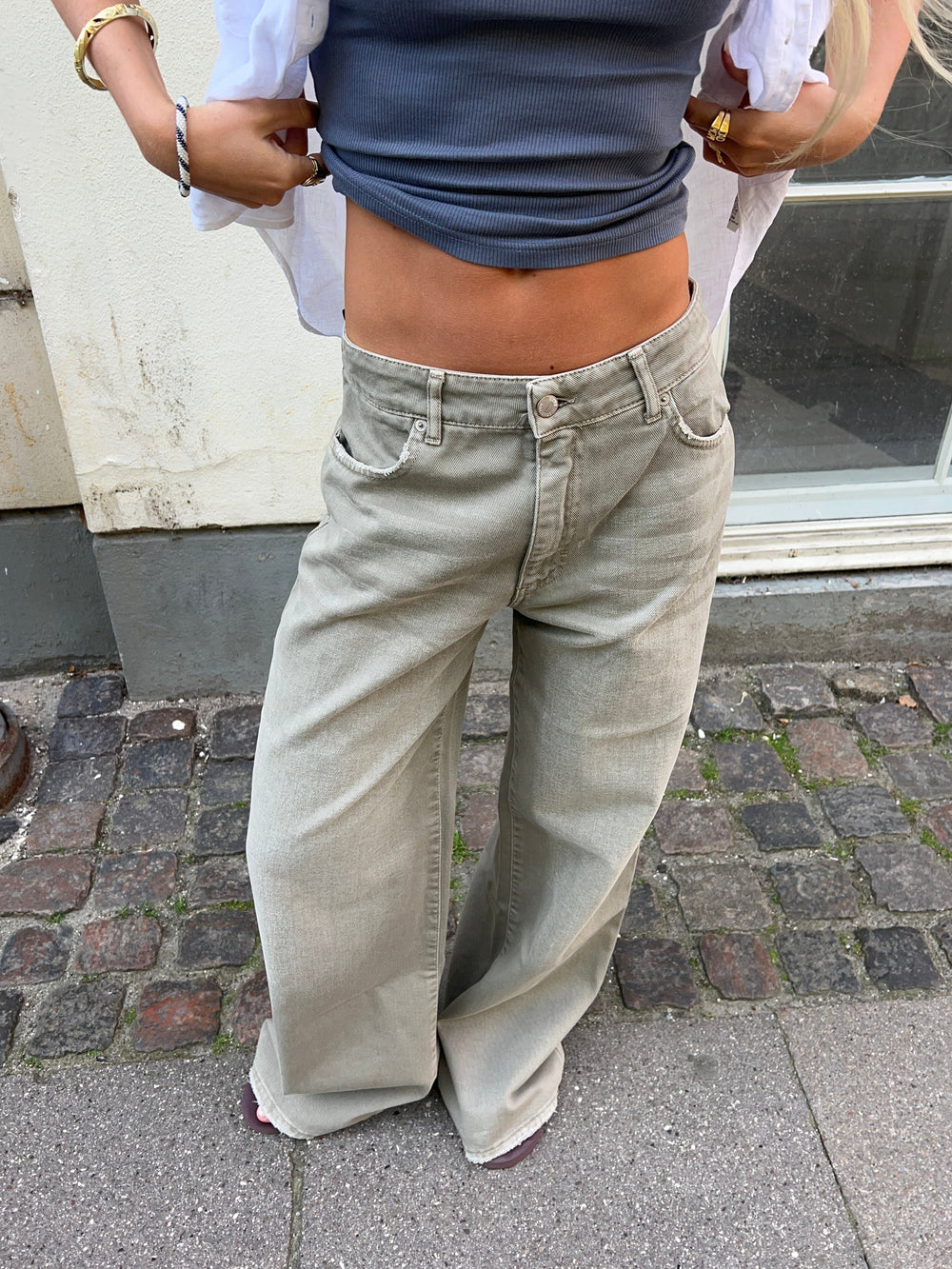 Note: The size of this model may vary depending on the wash the product has undergone during production. The sage green jeans might seem a bit bigger.
