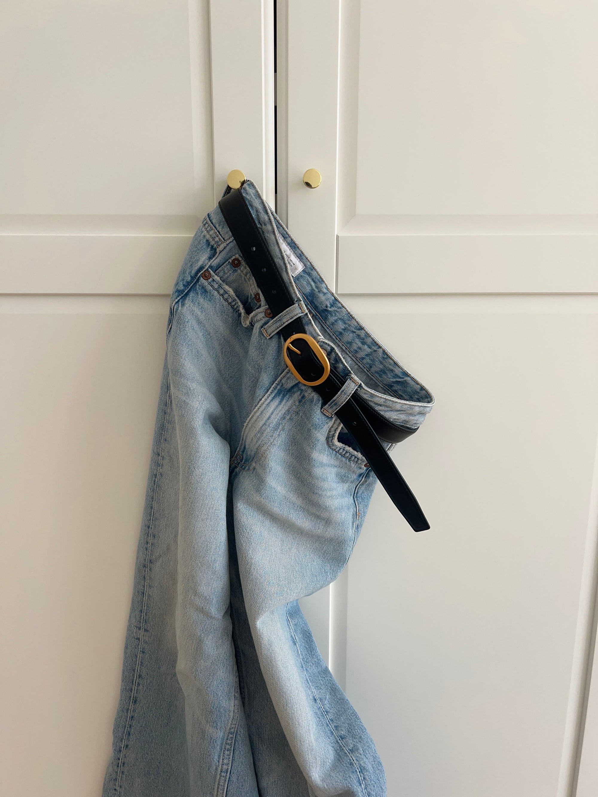 Add an elegant touch to your outfit with our "Classic Belt" in black with gold details. Designed in glossy faux leather with a rounded gold-tone buckle, it offers a sophisticated and modern look. The adjustable fit makes it perfect for both everyday wear and festive occasions.