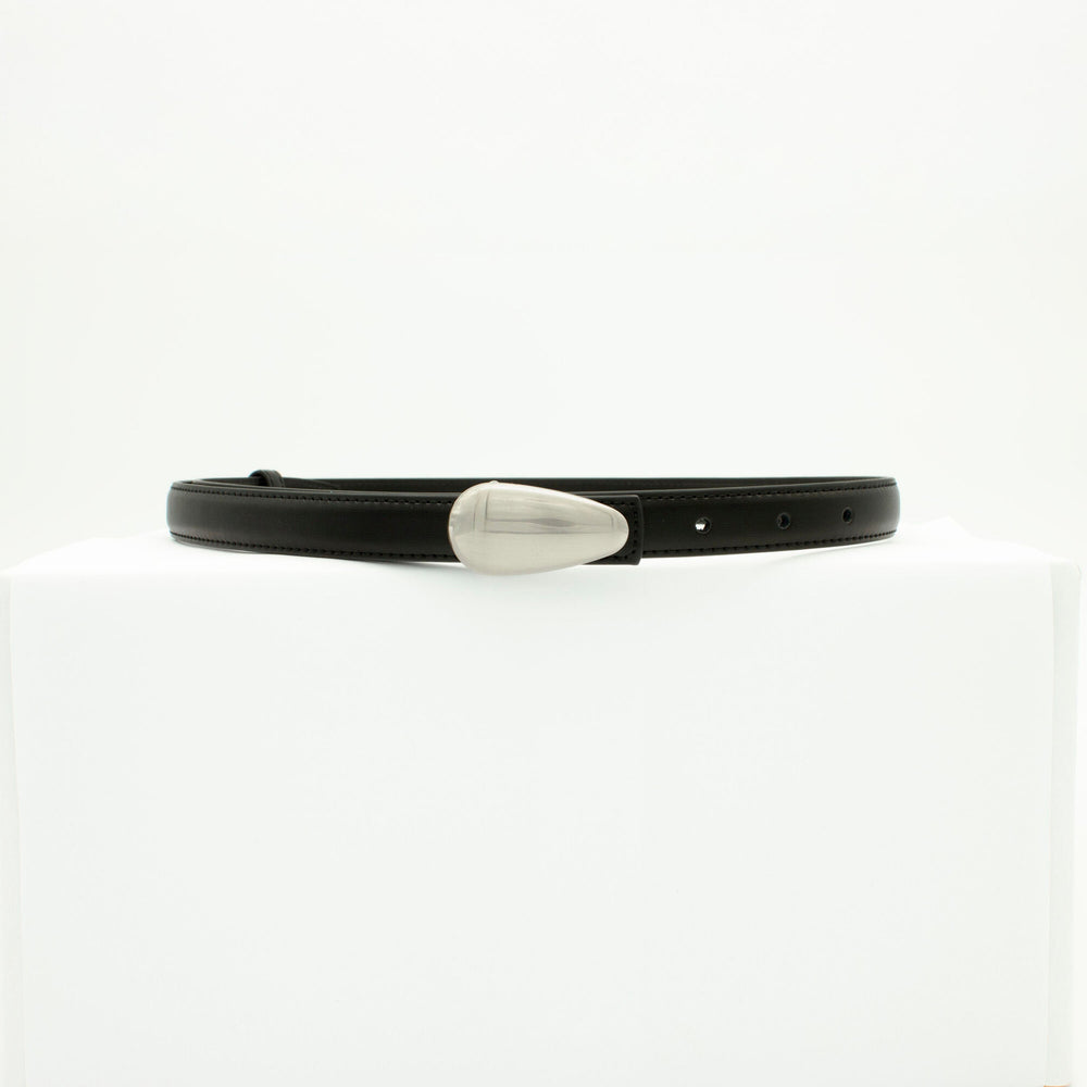 Add an elegant touch to your outfit with our "Core Belt" with silver details. Designed in black faux leather with a rounded, minimalist silver-finish buckle, it offers a timeless and cool expression. The adjustable fit makes it perfect for both everyday and evening wear—across seasons and styles.