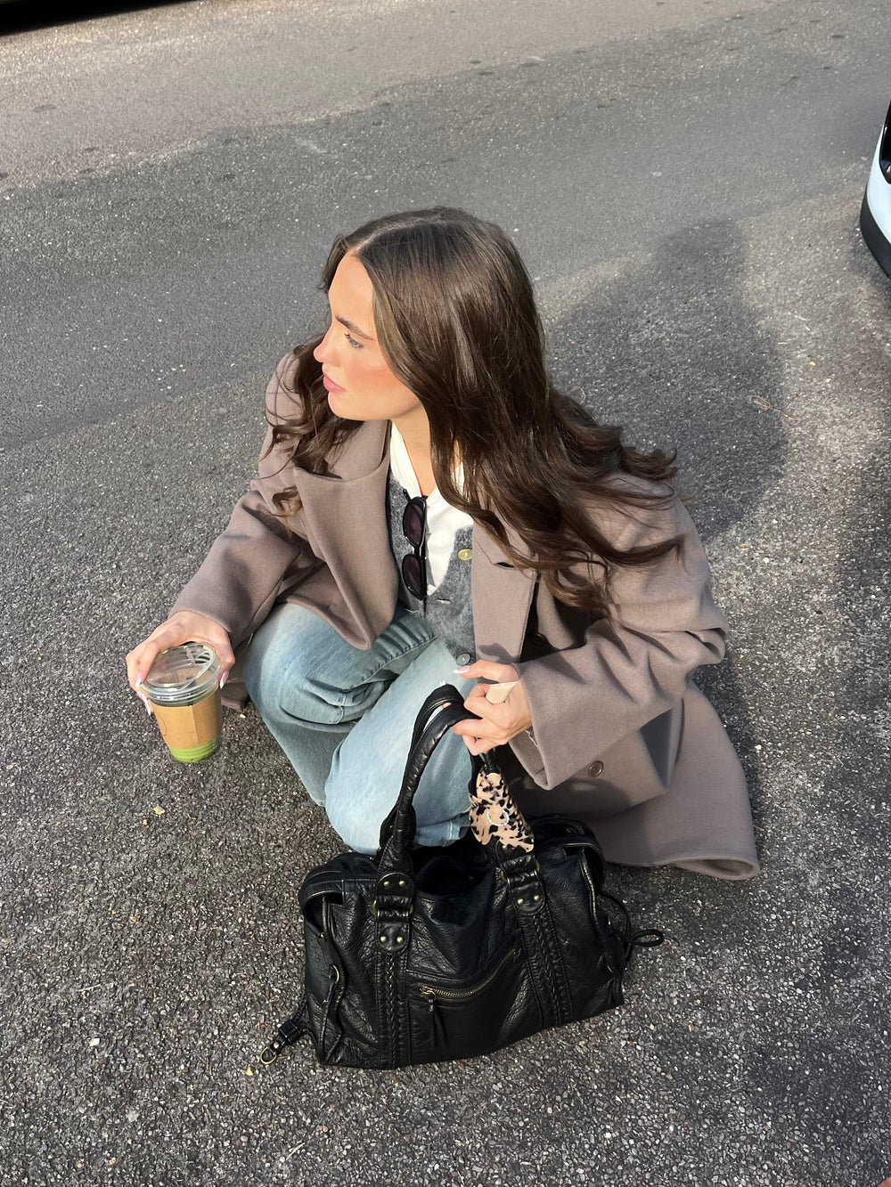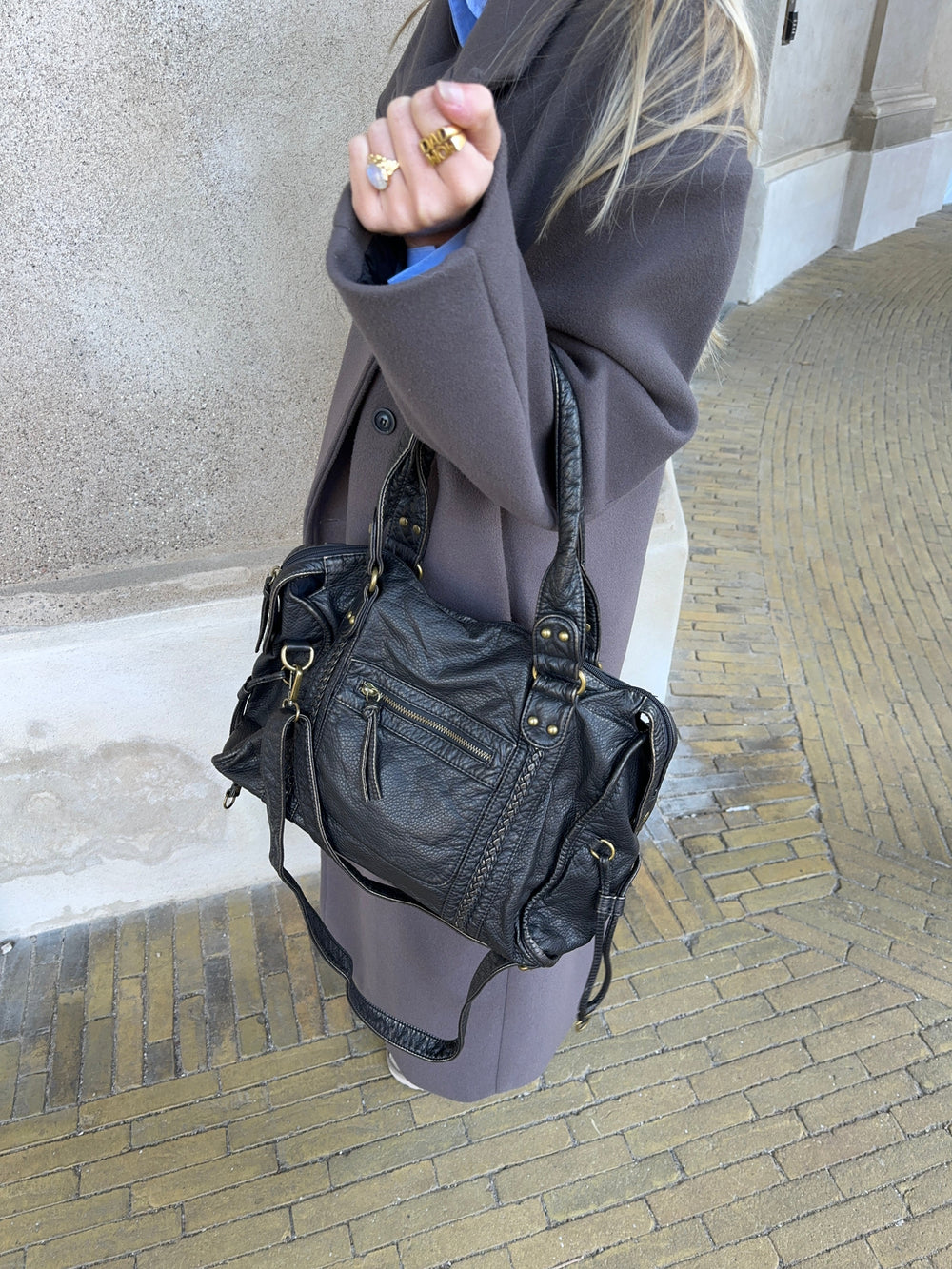 This bag is perfectly designed to accommodate a 13-inch laptop, making it ideal for studying or work. It comes with both a short and an adjustable long strap, allowing you to carry it as a crossbody or over your shoulder. The bag features elegant gold details and has a practical zippered pocket on the back. Inside, you'll find a small compartment as well as another zippered pocket for the secure storage of valuables. With the zip closure, you can ensure that everything stays in place.