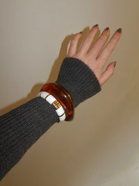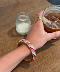 An elegant, hinged bracelet with a twisted design in enamel and gold-toned details. The alternating shades of green, pink, and cream create a fresh, retro-inspired look – perfect for adding color and personality to any outfit.