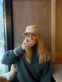 The Gudrun cap is a classic and sleek cap in a warm brown shade with a timeless appeal. Its simple design makes it easy to style with jackets, knits, or more casual outfits. The cap has a structured shape that gives a polished look while also serving as a practical and fashionable accessory. This model is available in one size.