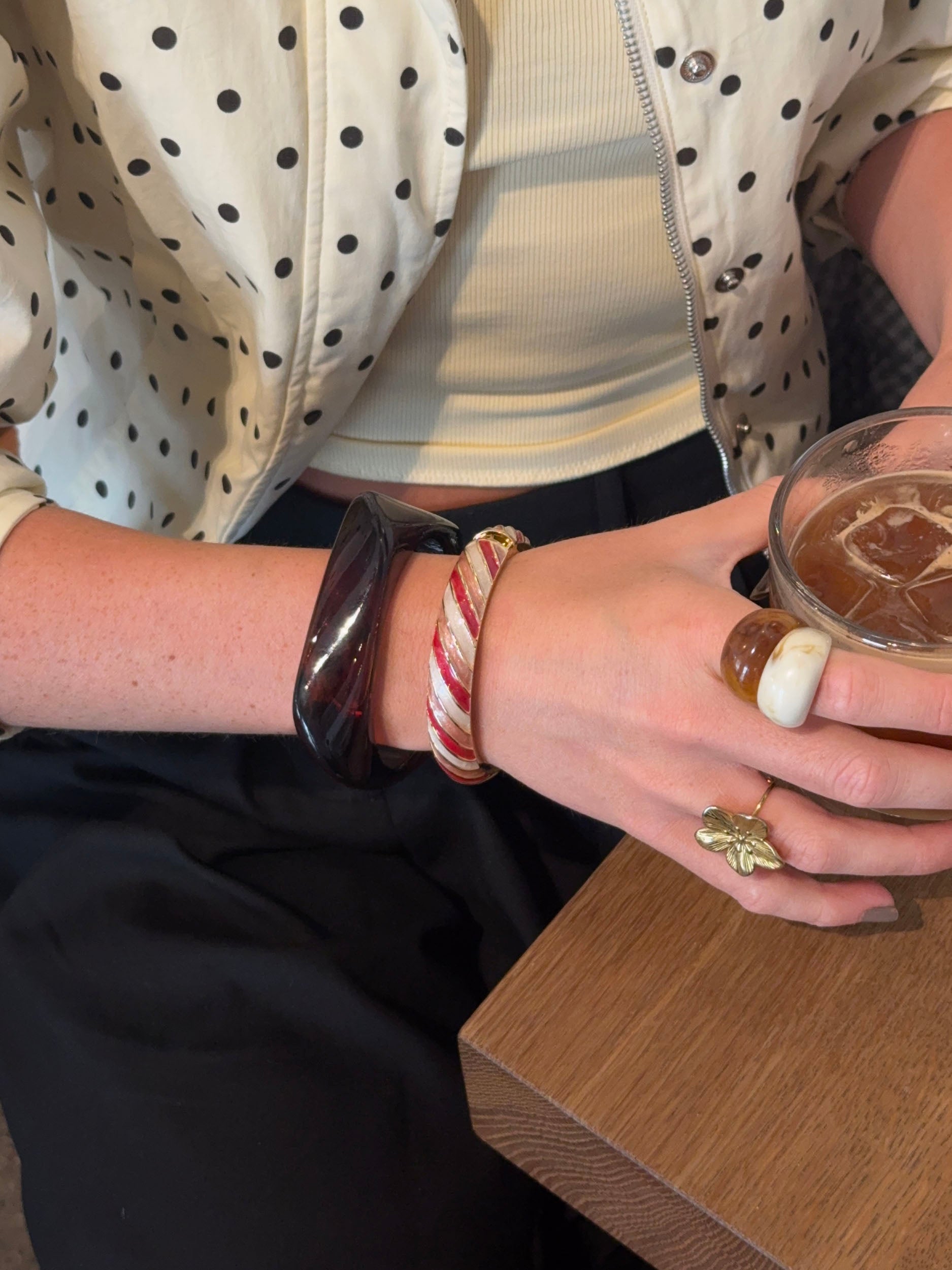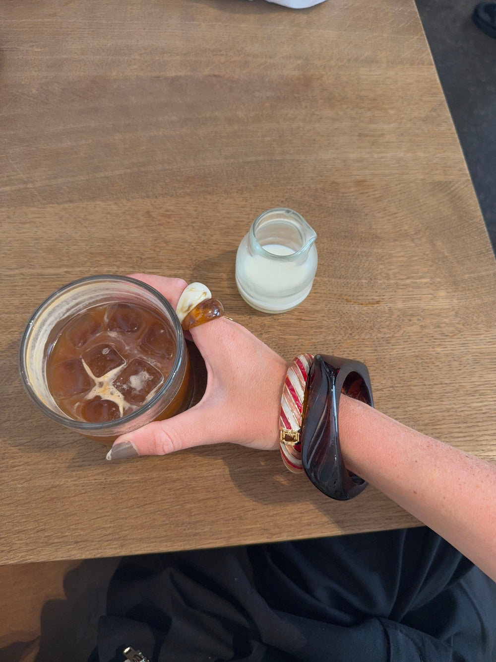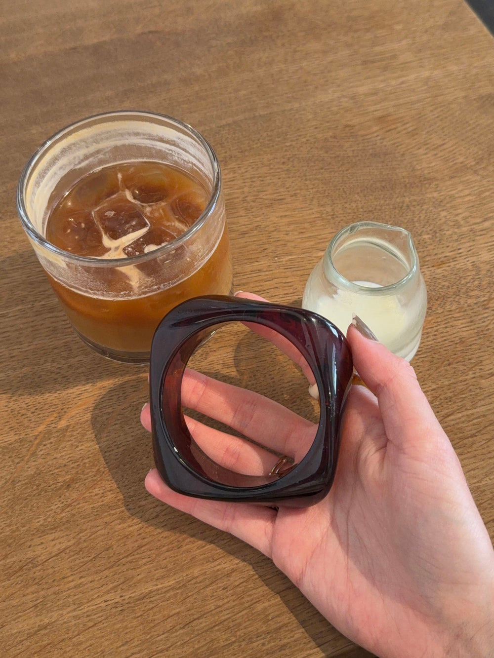A sculptural and eye-catching bracelet crafted in glossy, marbled resin with a warm honey-toned brown hue. The angular, asymmetrical shape adds a modern twist to this otherwise classic statement piece. Perfect worn on its own or layered with other chunky accessories for a playful, summery look.
