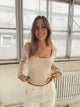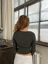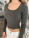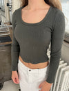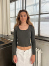 Blouse with long sleeves. The blouse is made of the softest and most comfortable ribbed material. It has a square cutout in the front.