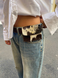 Elva is the small detail that makes a big difference. This compact wallet in genuine cowhide leather combines practical function with rugged charm. The white and caramel color combination, along with its one-of-a-kind pattern, creates a natural and personal look.