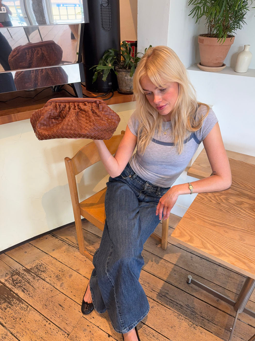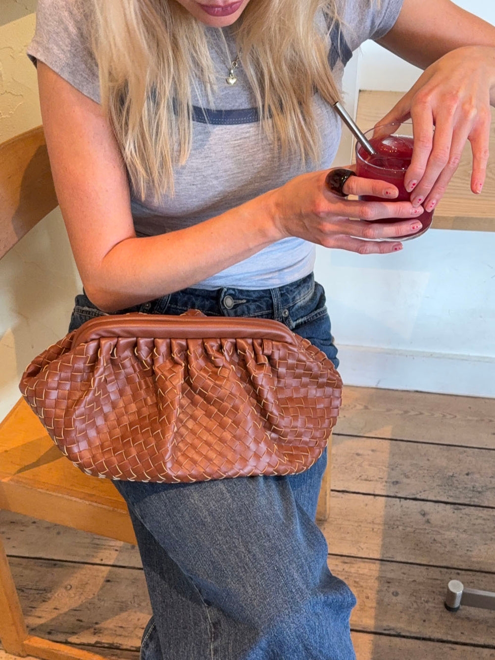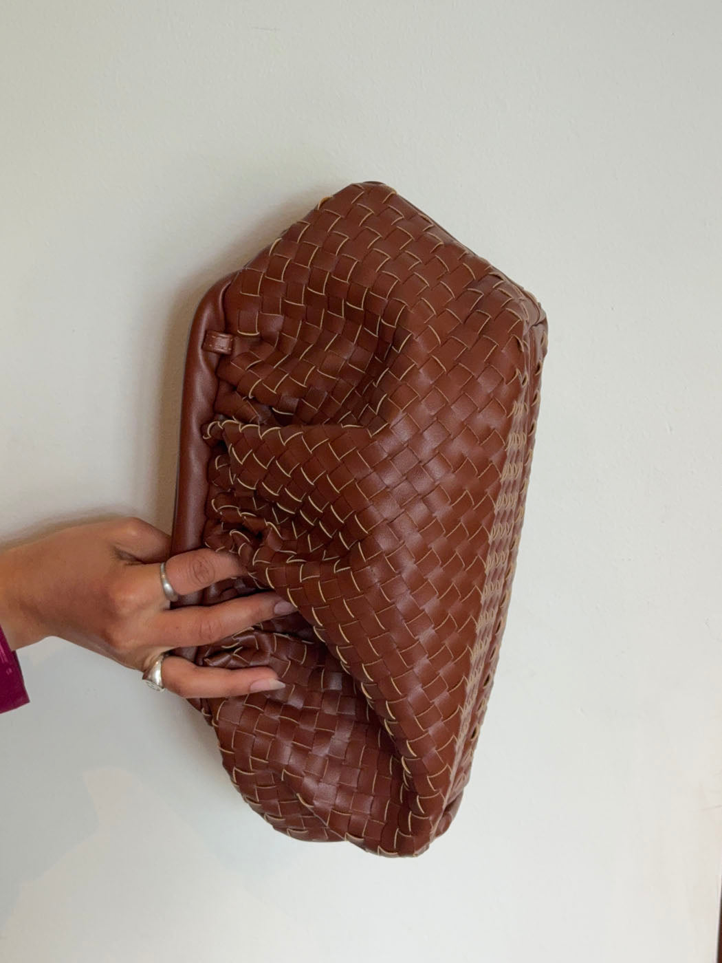Felix is a compact and elegant handbag with a woven leather look that combines classic craftsmanship with modern minimalism. The warm brown tone gives it a timeless expression, while the subtle silver details add a touch of sophistication. Perfect for both everyday use and special occasions.