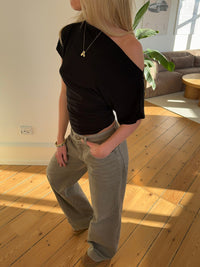 Our Florine t-shirt is both fitted and elegant. This version of Florine stands out due to the unique design featuring brown stripes on a yellow base. The t-shirt exudes a simple yet sophisticated vibe, while also having a unique twist that makes it perfect for those seeking a classic look with an exclusive touch.
