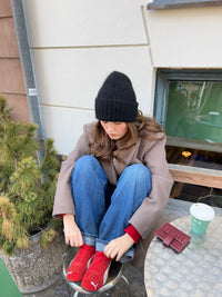 Soft beanie made from a thick and fluffy material. It features a foldable ribbed cuff to ensure a snug and comfortable fit.