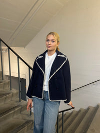 This jacket has the same fit as our popular Gina jacket but is slightly thinner in the material. The jacket has wide lapels and 2 large side pockets. It closes with a double button closure at the front and has the finest stitching details.